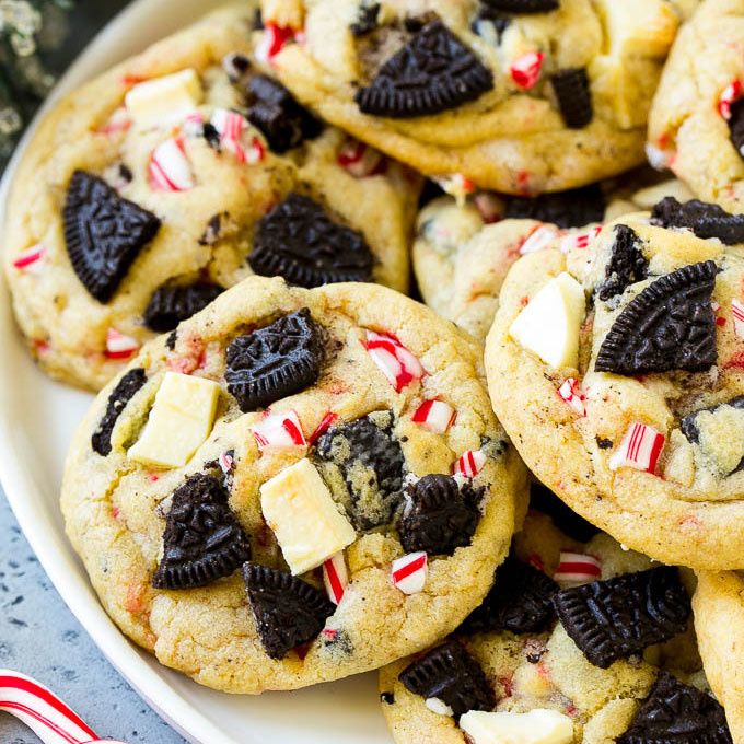These peppermint cookies are loaded with white chocolate chunks, candy canes, and Oreo pieces for a unique holiday cookie that everyone will love!