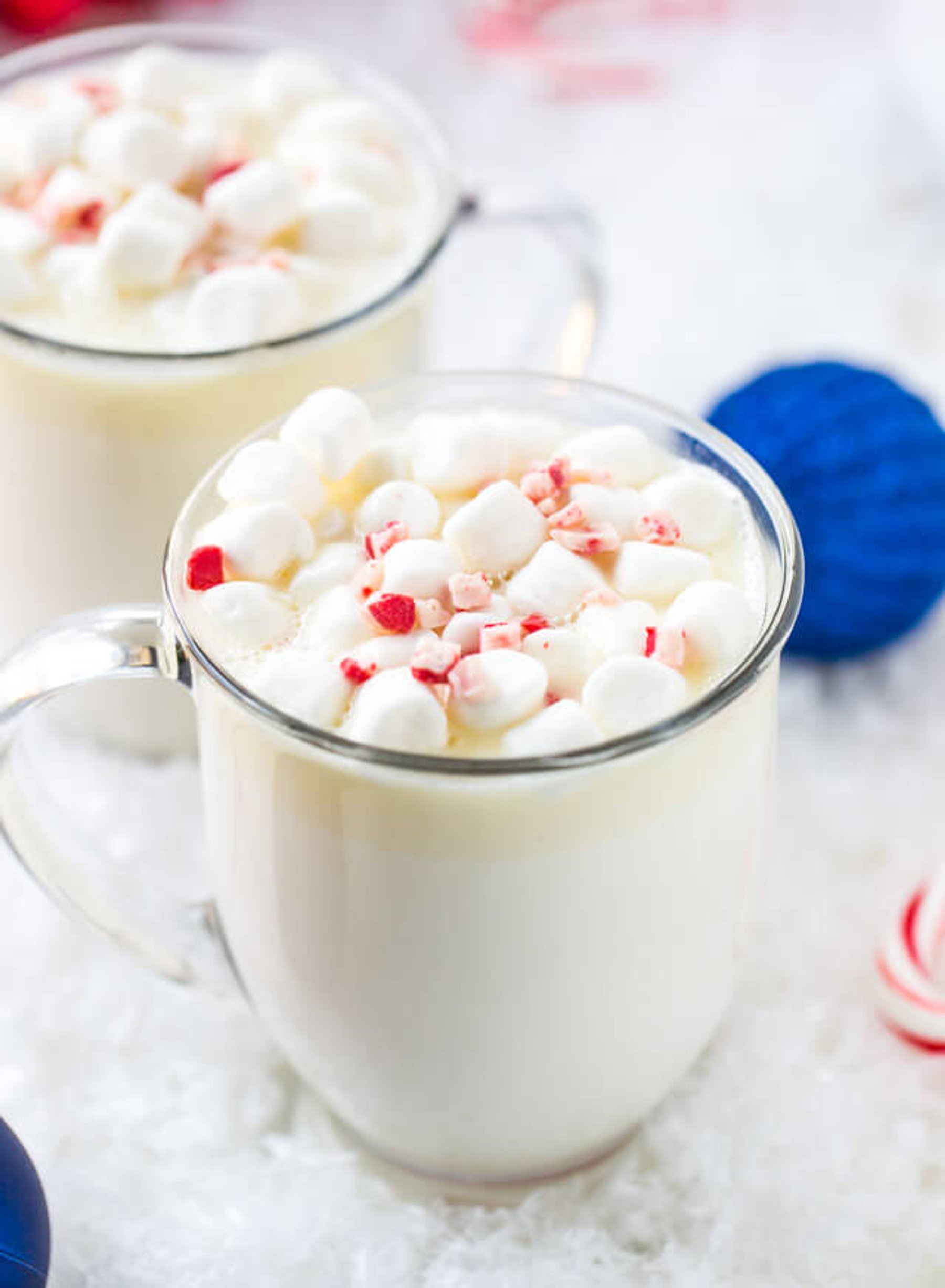 Warm up by the fire with this Homemade Peppermint White Hot Chocolate drink. You only need three ingredients and it takes about 10 minutes from start to finish.