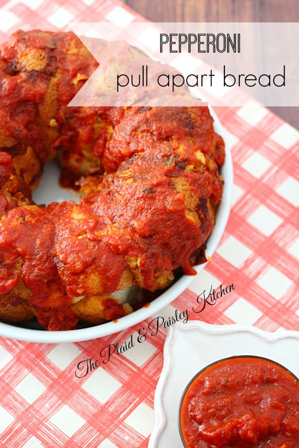 So saucy, cheesy and pepperoni Good! Pull apart bread is the perfect appetizer. It feeds a crowd, is finger good and dippable. Is there anything better than an appetizer that you can dip?