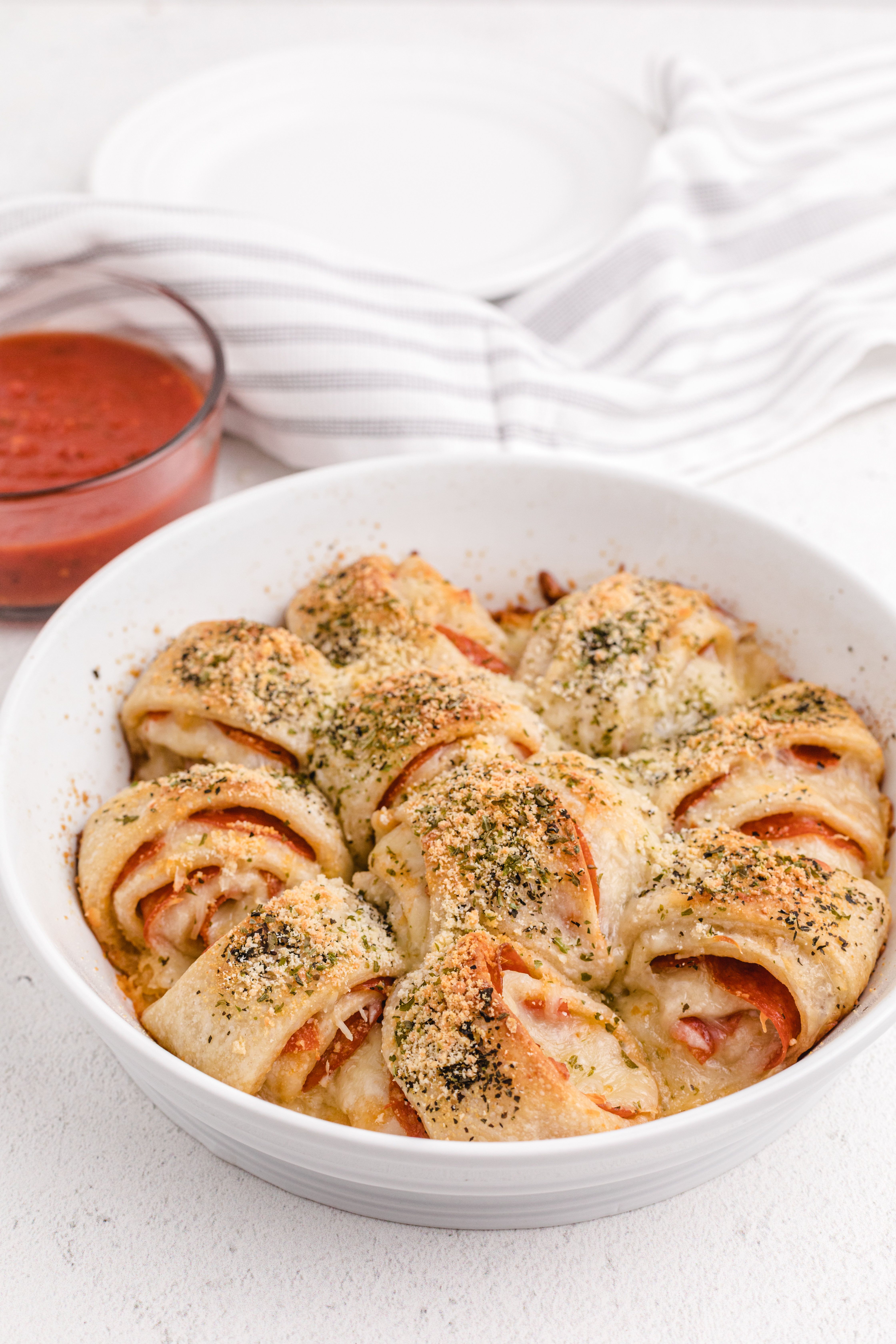 Make a platter for a party or for yourself! Kids and adults alike will love these pizza rolls.