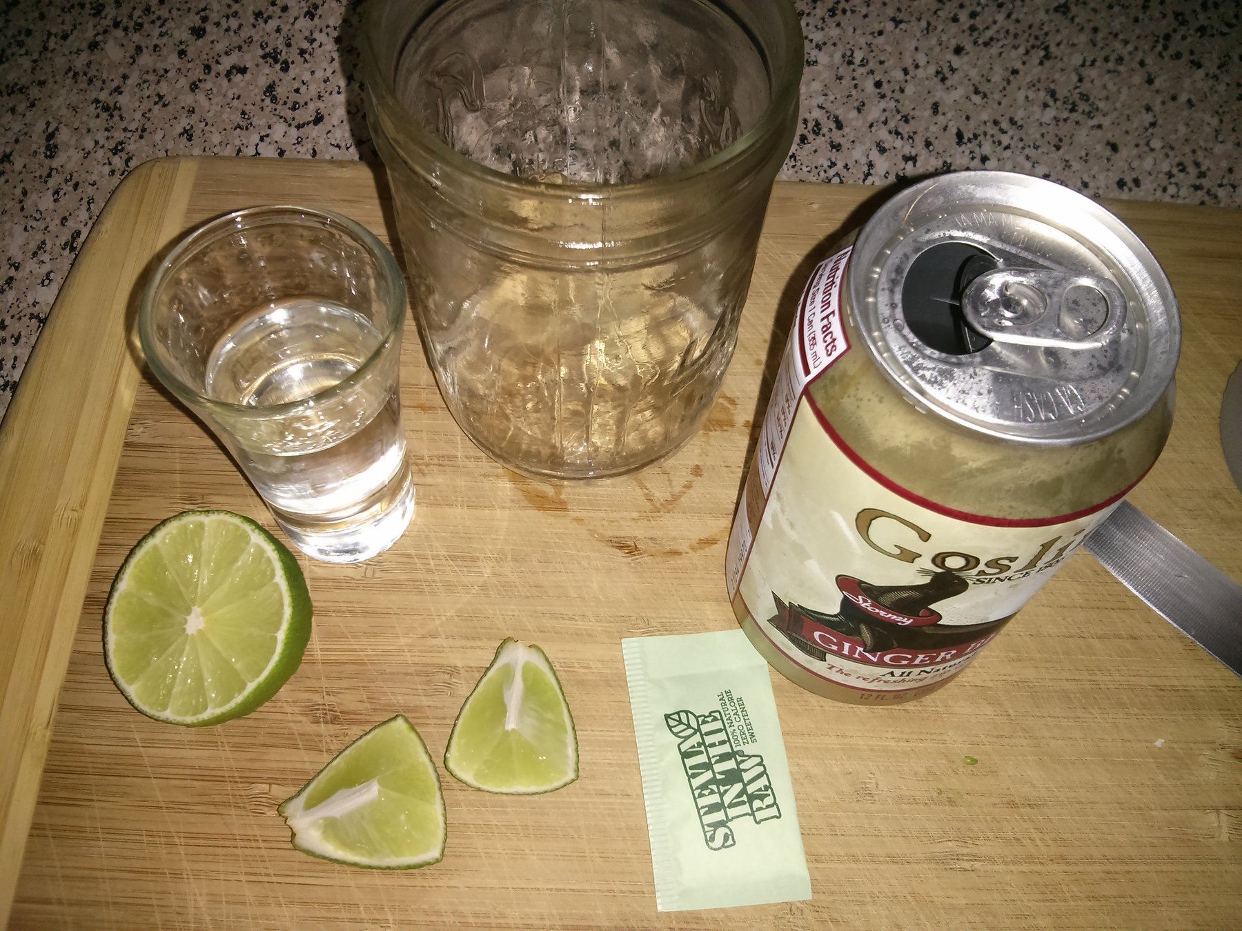 Pour the vodka, lime juice and stevia together into a shaker. Shake thoroughly, then pour into a glass with ice. Top with ginger beer, and give it a quick stir to combine.