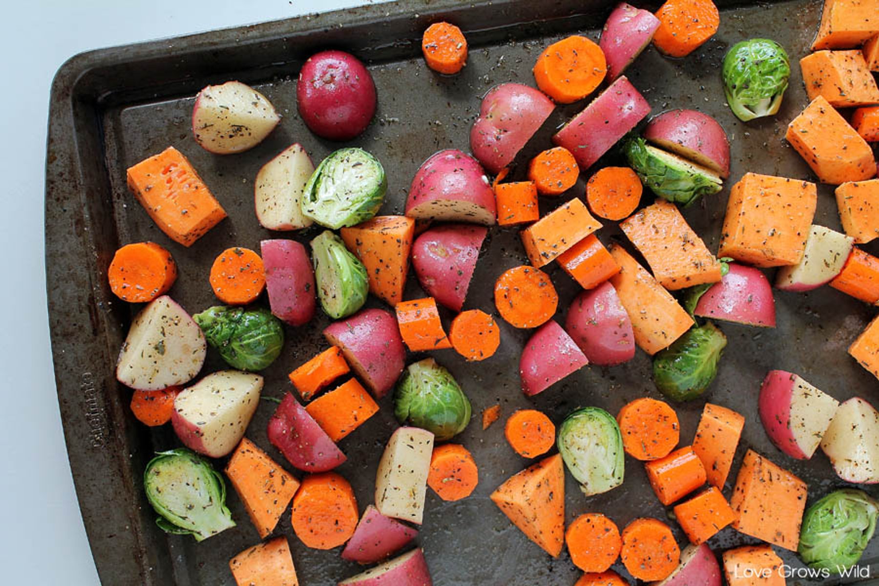 These Roasted Fall Vegetables have a delicious herb seasoning and make a perfect side dish for the holidays!