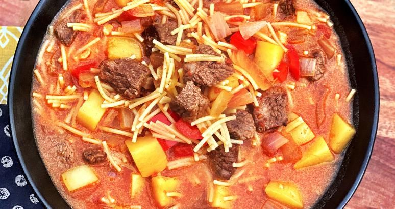 This Peruvian beef and noodle soup is both comforting and filling! The flavorful stew includes fideo pasta, potatoes, tender Wagyu beef, onions, tomatoes, and Aji Mirasol (Peruvian hot pepper paste). This toasty and easy-to-make dish is perfect for a cold winter day. Try this recipe for lunch or dinner!