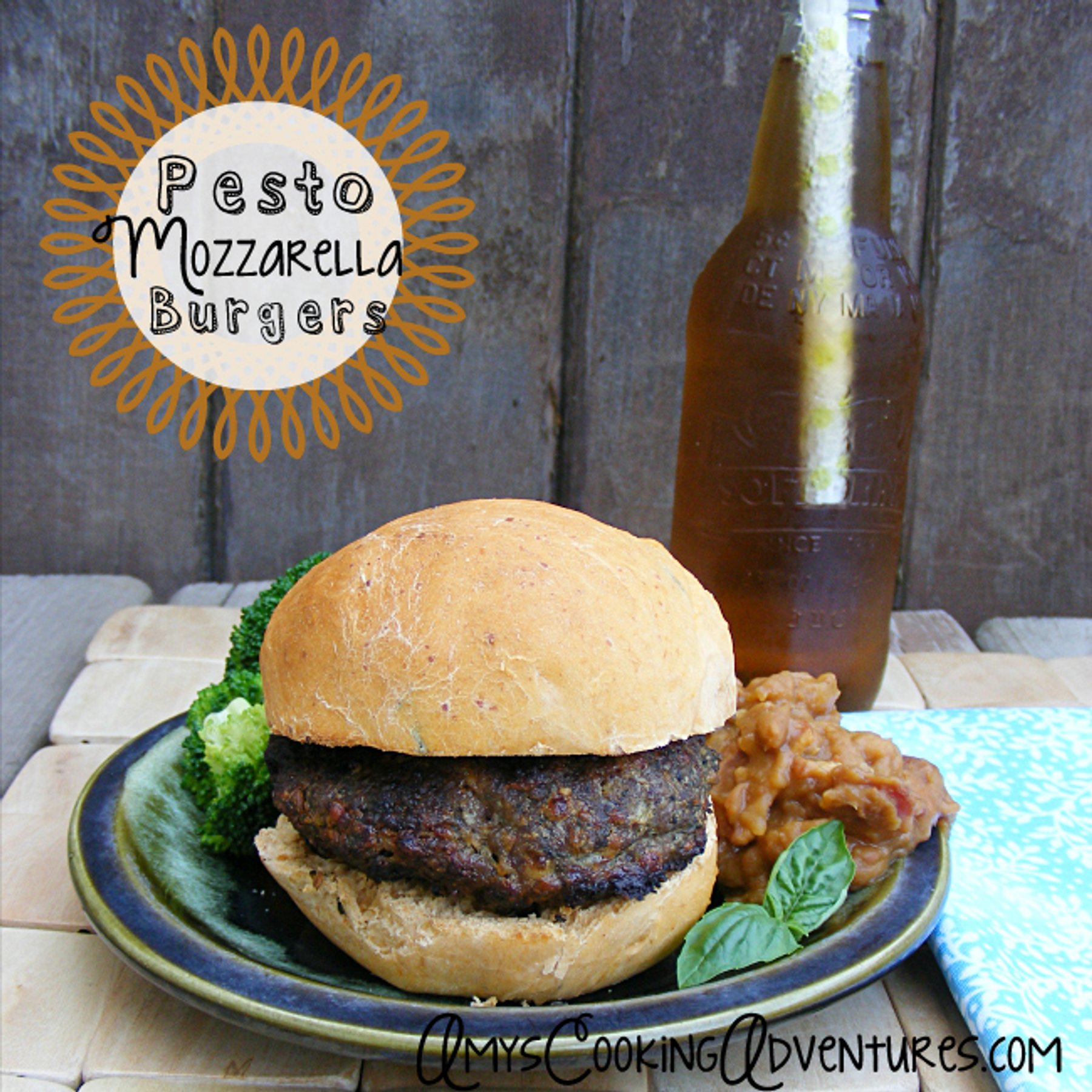 Pesto-Mozzarella Burgers on Tomato Basil Hamburger Bun