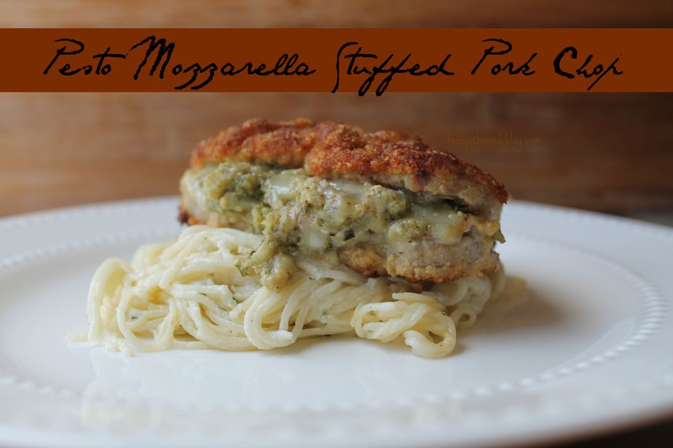 These pork chops are literally bursting with flavor from store bought pesto and shredded mozzarella