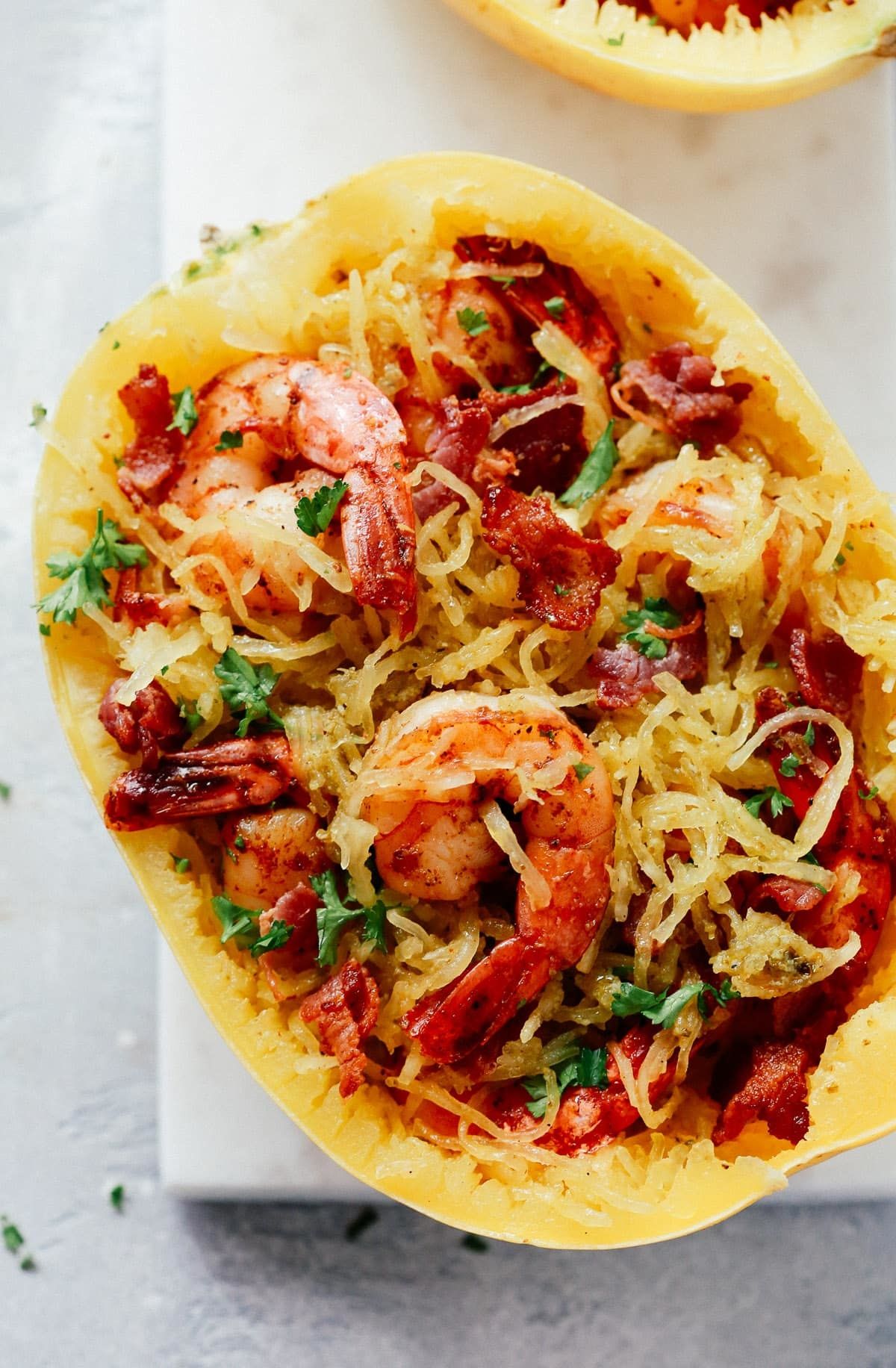 Main Dishes Pesto Spaghetti Squash with Shrimp Olivia RibasOctober 28, 2018 94 4Check out this delicious recipe!See the full directions on my site