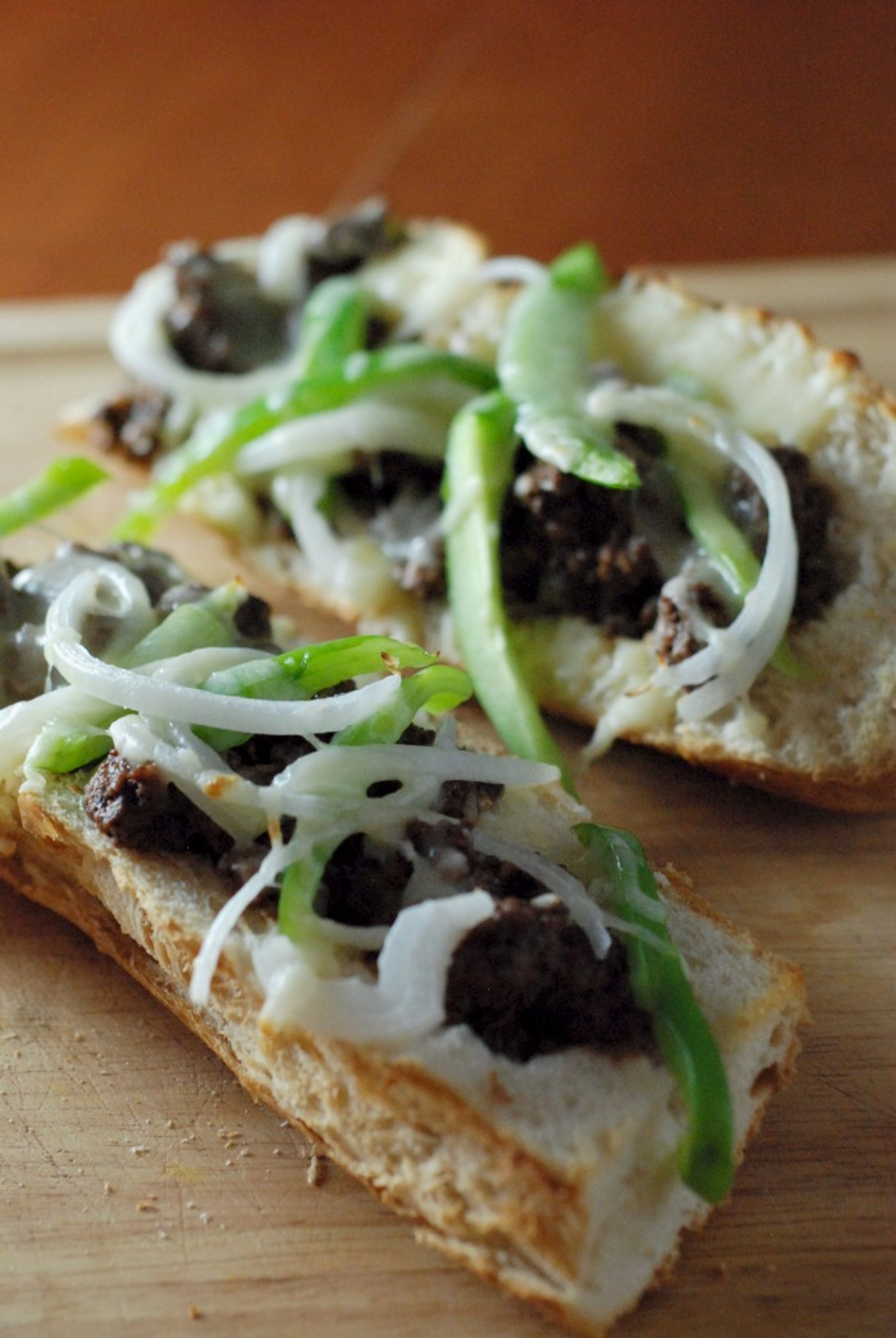 French bread pizza with all the Philly Cheese Steak Sandwich fix ins!