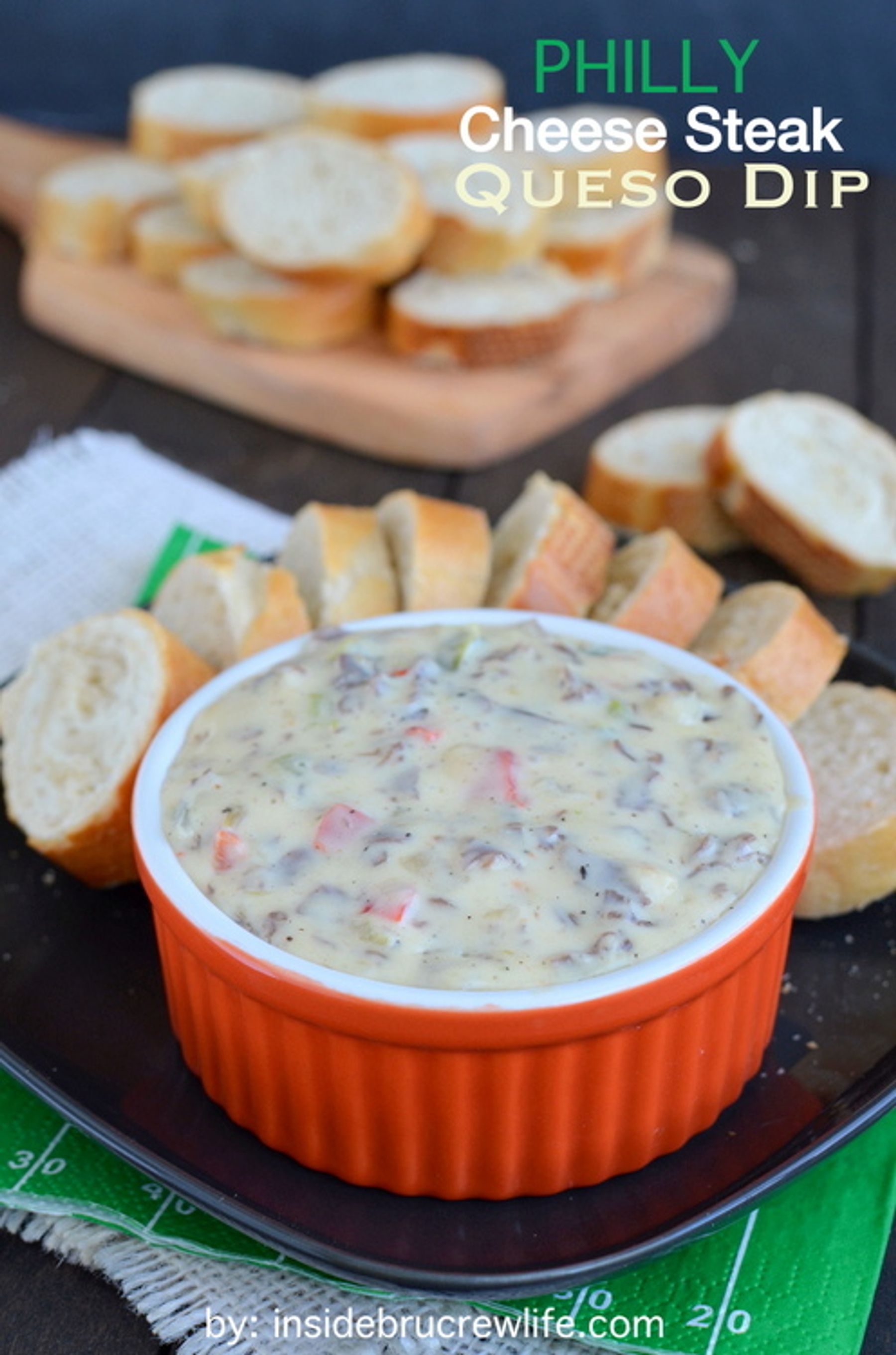 Saute the onions and peppers in the olive oil until tender. Add the roast beef and green chilis and stir until heated through. Set aside. In a large sauce pan combine the cheese and milk over medium heat....