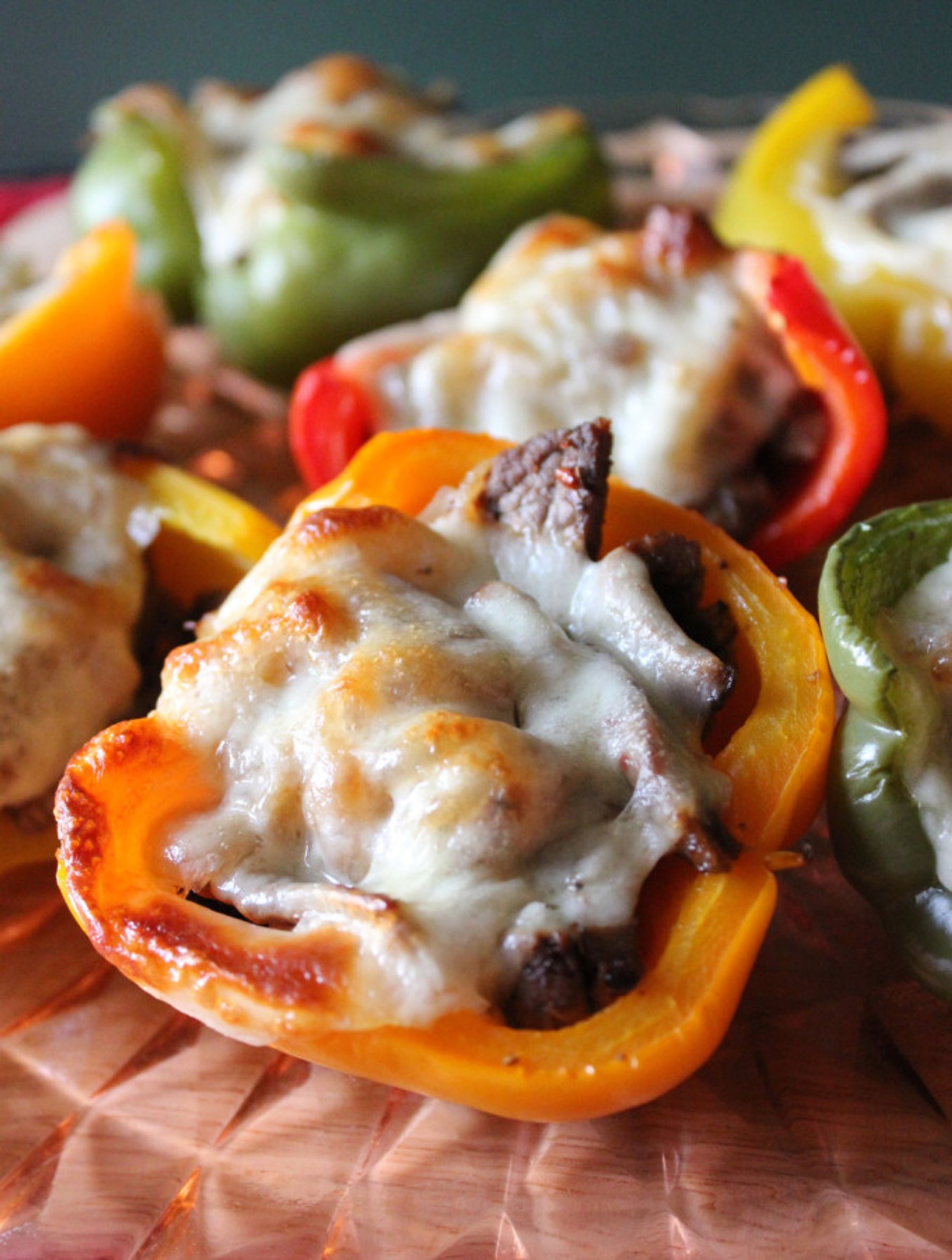 Enjoy your favorite philly cheese steaks in a healthier way by stuffing them inside of beautiful bell peppers.