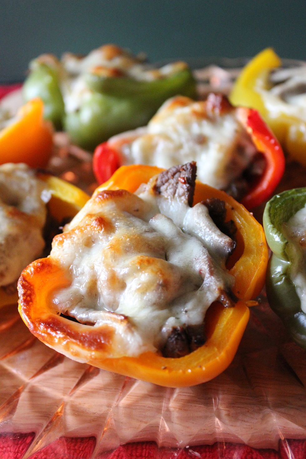 Enjoy your favorite philly cheese steaks in a healthier way by stuffing them inside of beautiful bell peppers.