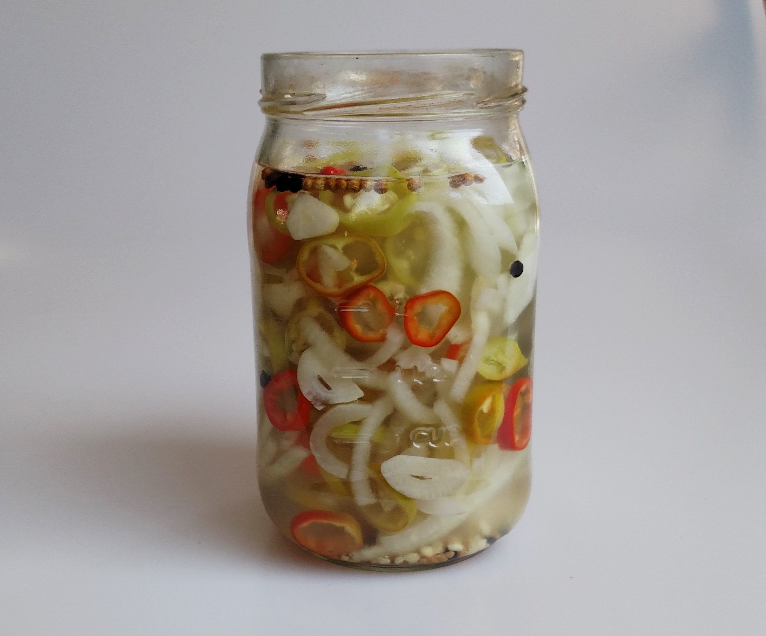 Pickled Hot Banana Peppers & Onions are a great way to use up peppers from the garden. Use these pickled peppers and onions as a spicy condiment on anything that needs a little kick!