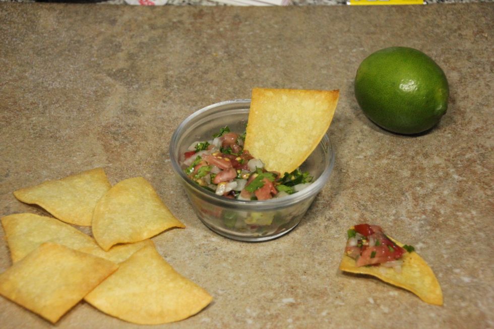 This homemade pico de gallo is fresh and full of flavor. Serving it with homemade lime chips takes it over the edge and flavors go together perfectly.