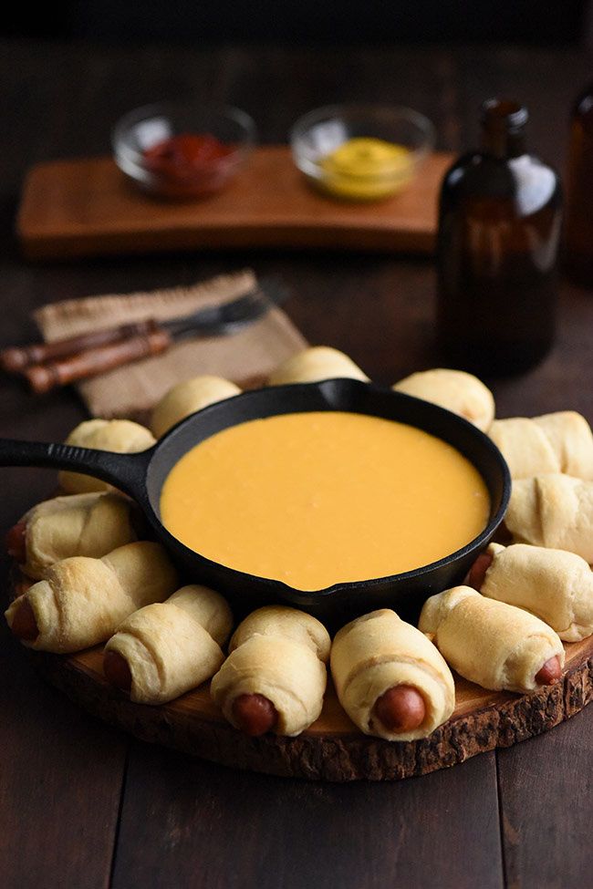 Wrap these sauages in fresh dough and bake them to a gold brown, and they're pretty hard to resist! Pair them with beer cheese dip and you have the perfect appetizer or party snack! Get the recipe for Pigs in a Blanket with Beer Cheese at MightyMrs.com!