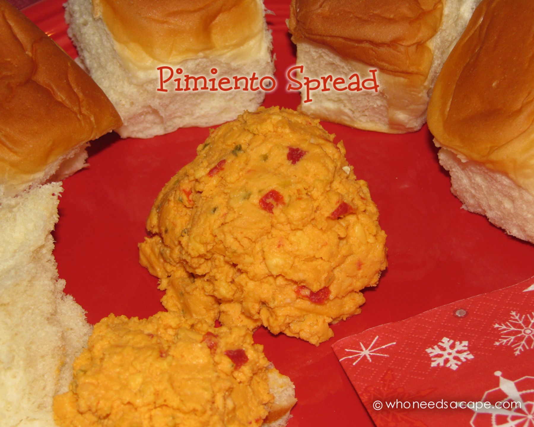When I first left Pennsylvania and relocated south of the Mason-Dixon line, I knew nothing of this “Southern caviar” more commonly referred to as pimiento spread (or “pimento,” if you prefer that spelling for this little red pepper). It’s used as a spread on crackers or as a sandwich filling, and is quite often offered on catering platters as finger sandwiches.