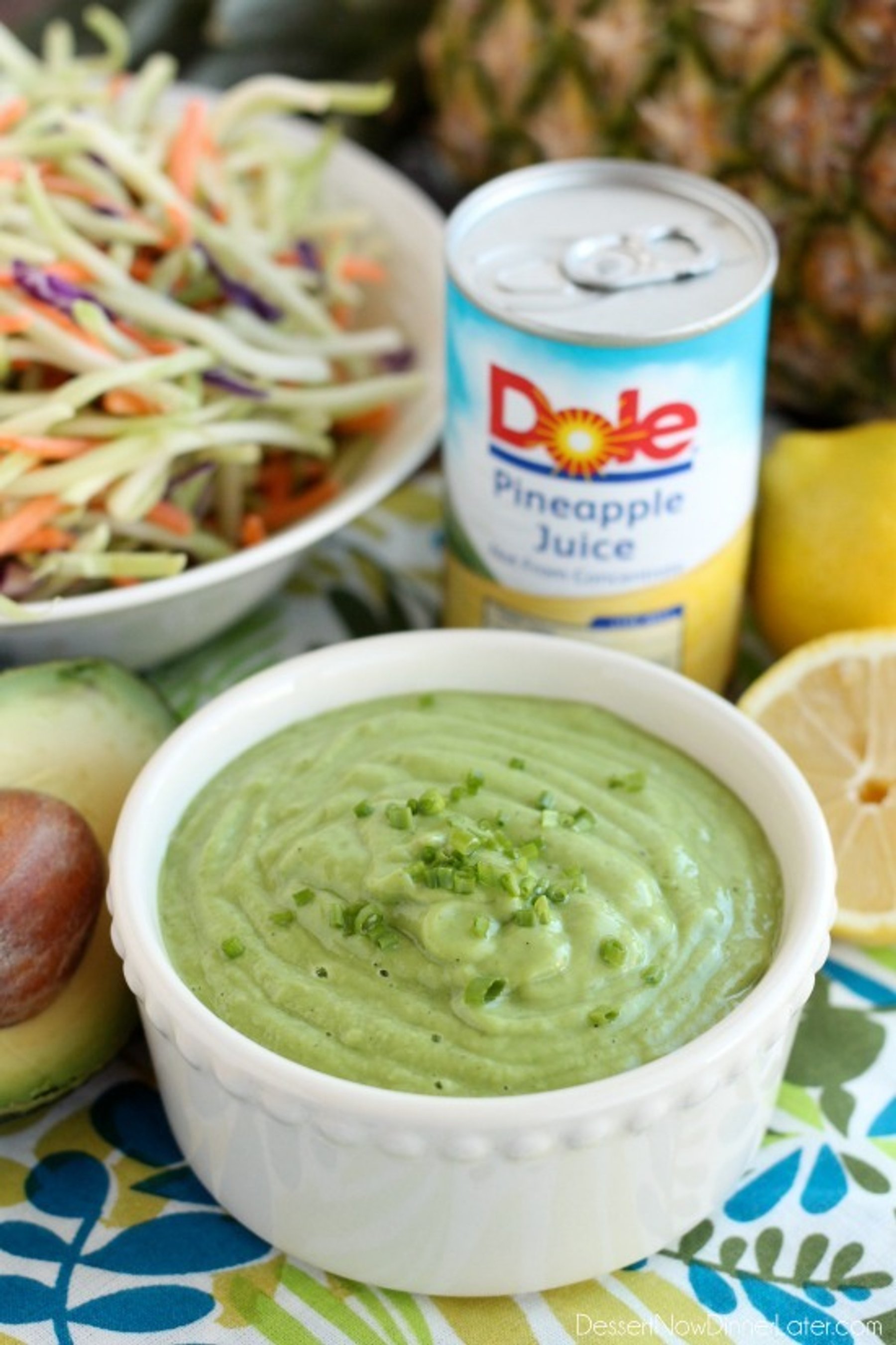 This Pineapple Avocado Dressing is made with DOLE pineapple juice, fresh herbs, and a ripe avocado, for a creamy dressing great on kale or broccoli slaw!