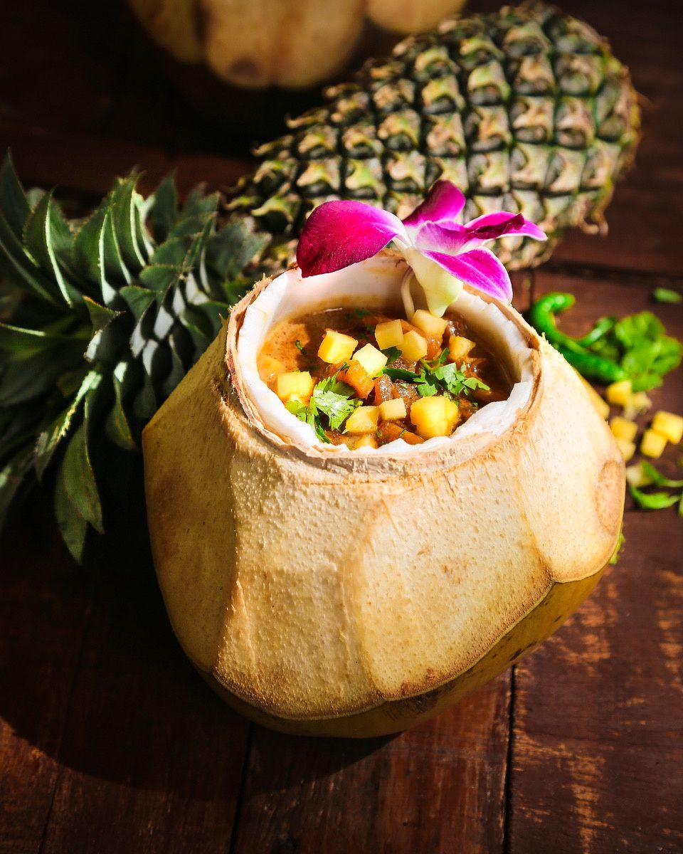 This simple, delicious, recipe for a tropical fruit curry can be created with just a few spices and coconut milk. Great with rice or perfect as a side with grilled chicken or meat.