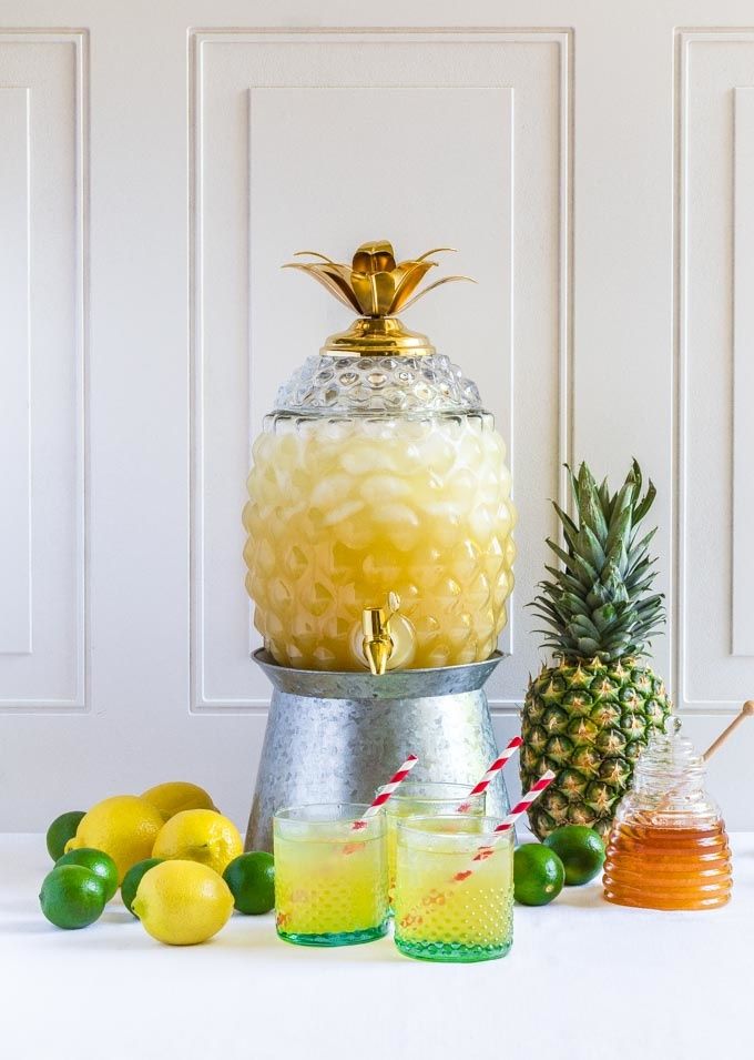 - Pour pineapple juice into a large beverage dispenser.