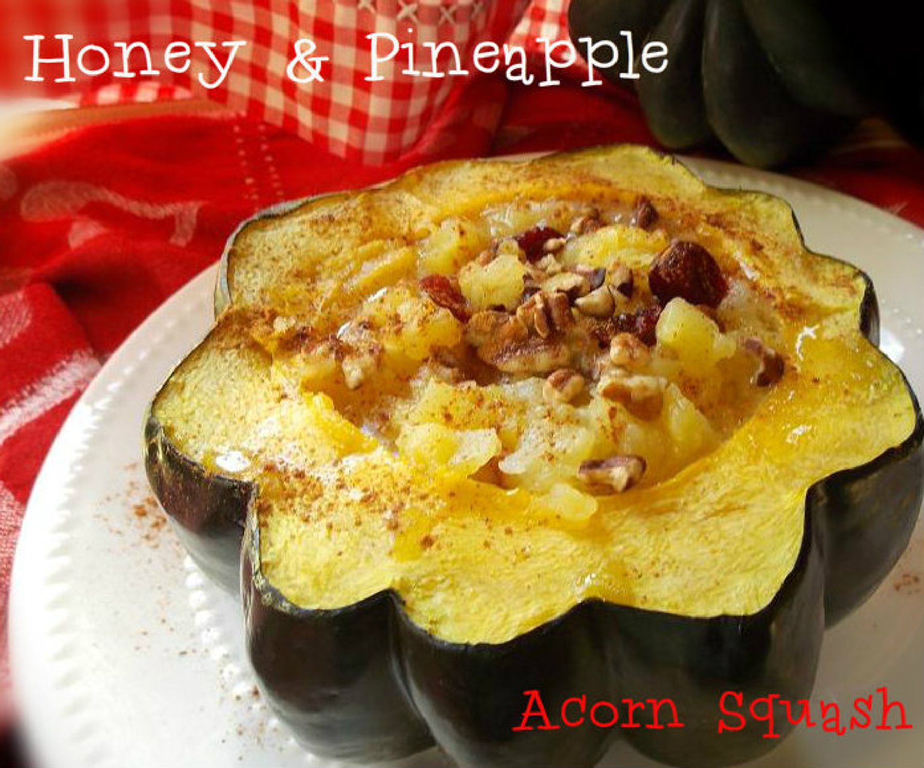 Place Squash halves, cut side up, in a microwave- safe dish. Microwave on high for 8 to 10 minutes until tender. Combine pineapple and next 4 ingredients : spoon into squash halves. Microwave on high 30...