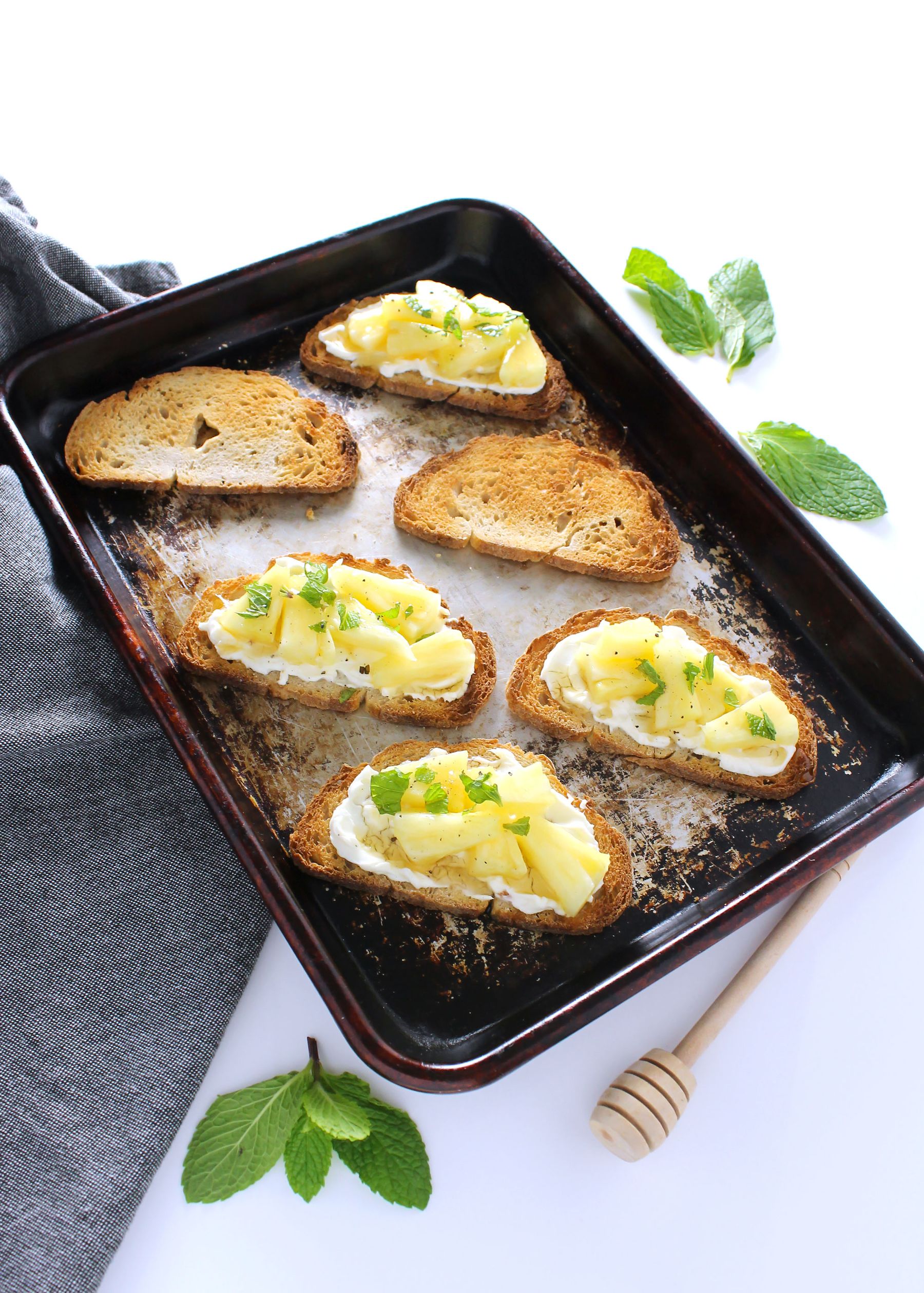 Appetizers Pineapple Mint Crostini Aimee Mars March 05, 2017 29 The Pineapple Mint Crostini are a flavor explosion of an appetizer but are simple enough to prepare for any party or dining experience. http://www.aimeemars.com/pineapple-mint-crostini/ See the full directions on my site