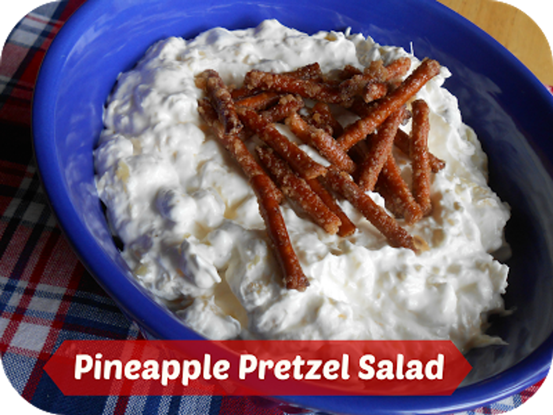 A simple pineapple cream cheese salad topped with pretzel sticks baked in butter and sugar. You may want to double the pretzel recipe so you can eat them alone.