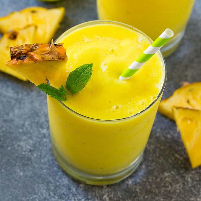 This pineapple smoothie is a tropical combination of pineapple, banana, pineapple juice and Greek yogurt, all blended together until creamy and smooth. A great smoothie for breakfast or snack time!