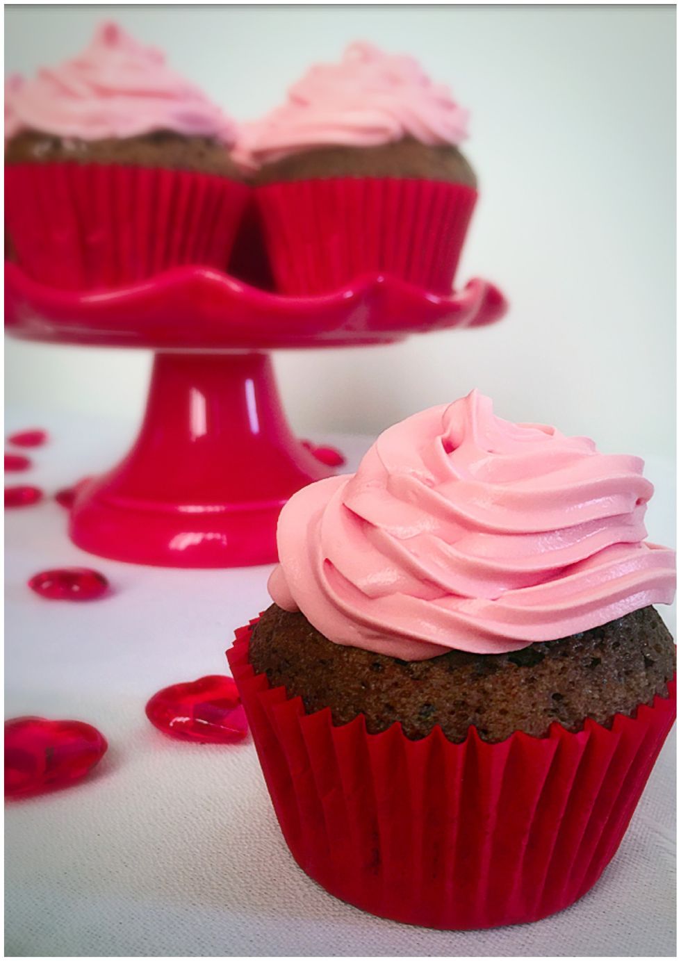 Valentine\\\'s Day chocolate cupcakes with pink frosting, a sweet way of saying I love you