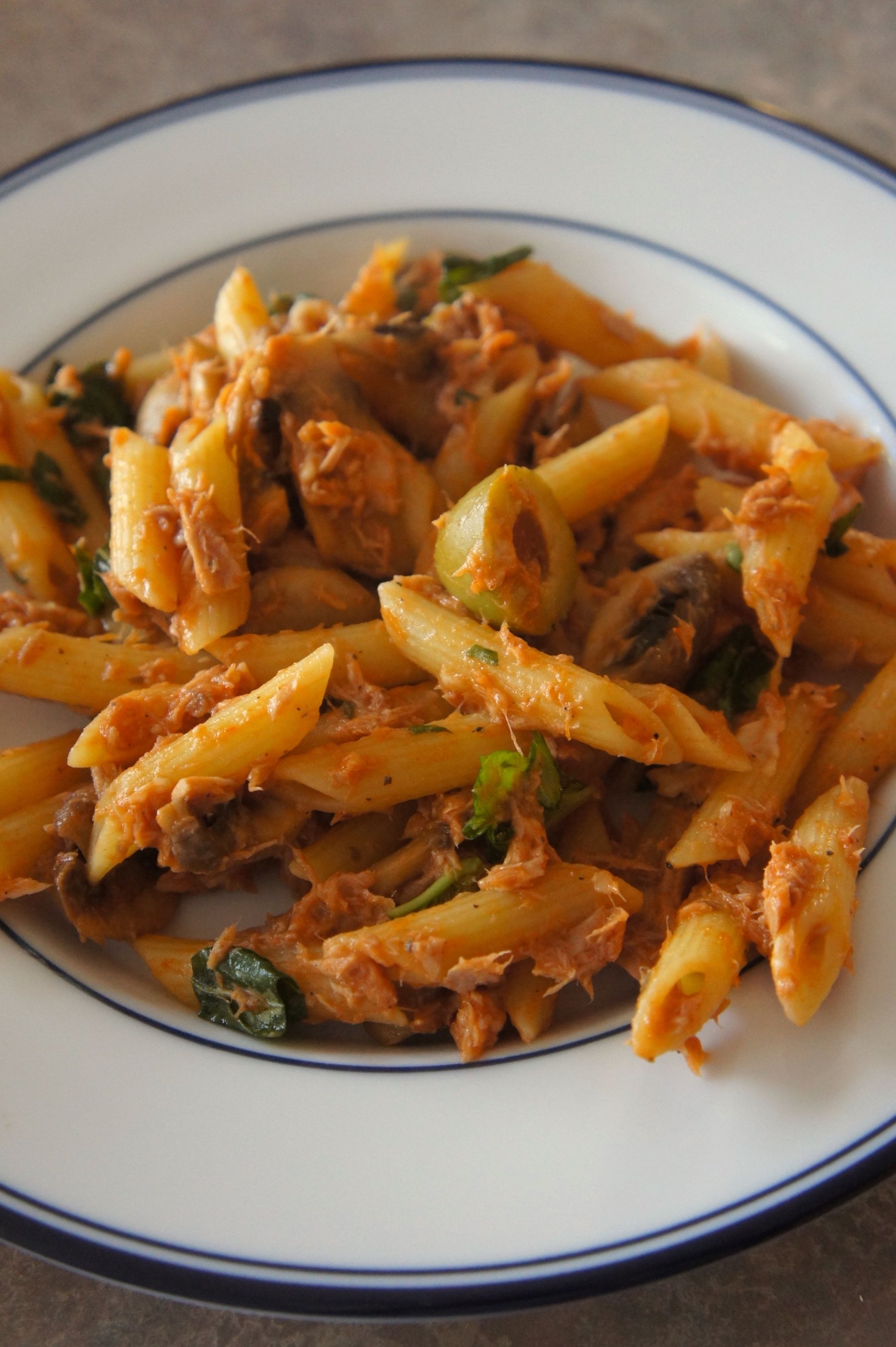 An easy and delicious meal made with pasta, tuna fish and other yummy ingredients.