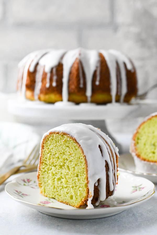 This vintage Pistachio Cake recipe is an easy dessert that starts with a cake mix and a box of pistachio pudding! The Bundt cake has a moist, tender crumb, a fresh, nutty flavor and a sweet almond glaze. It's perfect for a simple Sunday supper, a festive St. Patrick's Day gathering, Easter brunch, bridal showers and baby showers. Best of all, the crowd-pleasing Pistachio Pudding Cake comes together with about 15 minutes of prep!