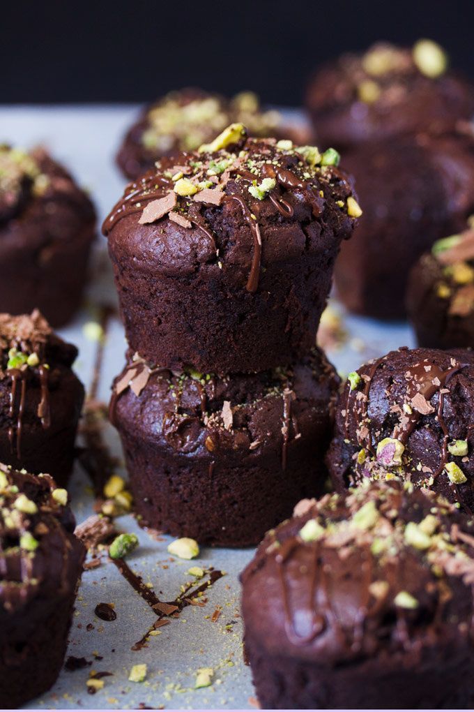 These Pistachio Chocolate Chocolate Chip Muffins are perfectly moist chocolate muffins loaded with dark choc chips and crushed pistachios.