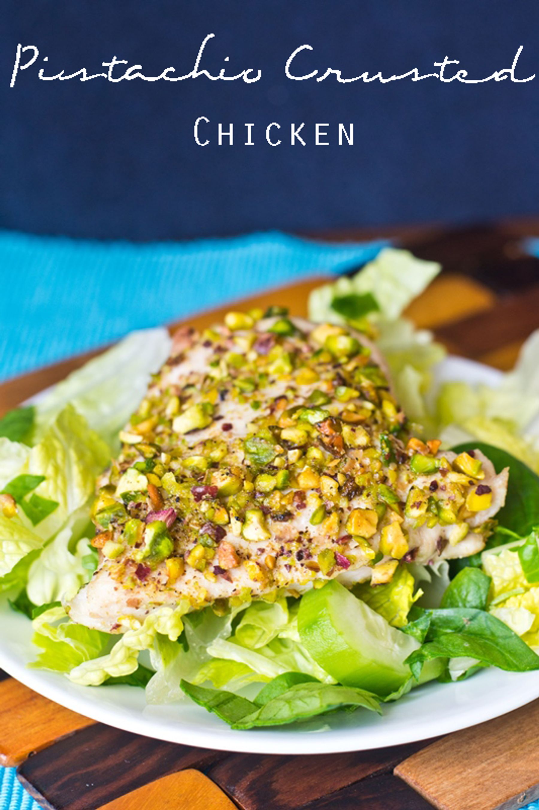 Healthy pistachio nuts cover this baked chicken to give it a crunchy coating.
