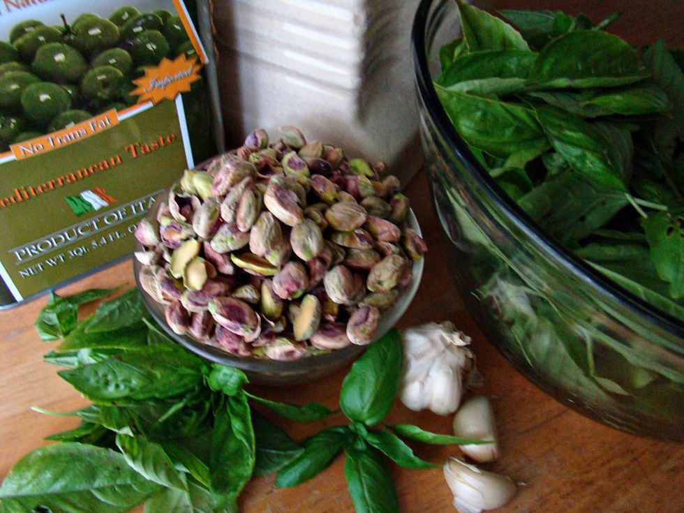Warm and redolent of sunny days and Tuscan fields! This version uses pistachios instead of pine nuts. Perfect as a spread on sandwiches, or spooned in soups and over pasta.