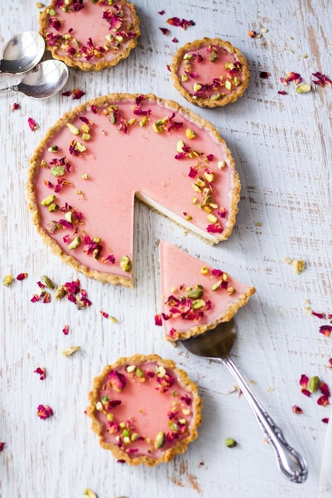 Pistachio Rose Panna Cotta Tart, with it's pistachio tart crust, rose panna cotta filling& jelly topping is perfect for Spring
