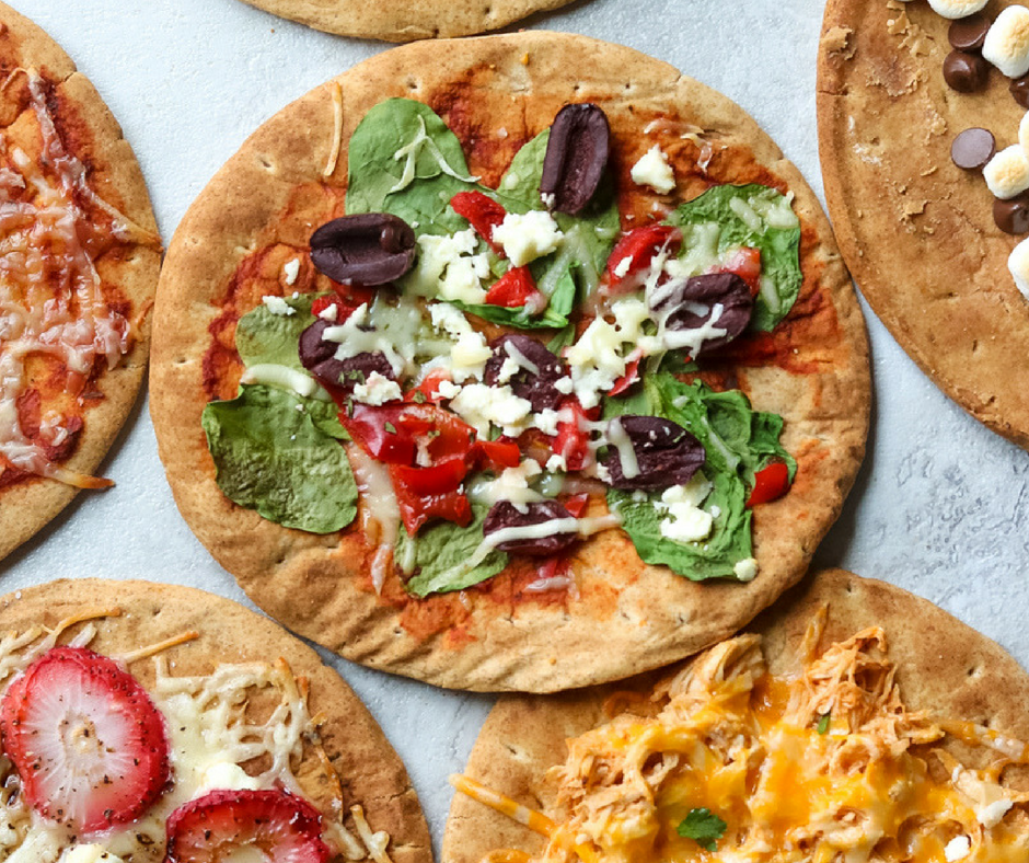 Make dinner super easy and fun with individual pita bread pizzas. 6 delicious varieties to choose from and to please EVERYONE!