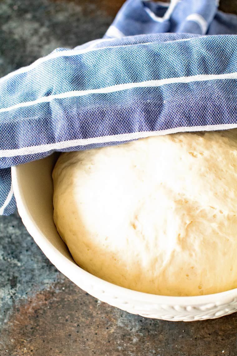 - Add salt, honey, garlic powder. Slowly add in 2 1/2 c. flour while mixing in stand mixer with dough hook....