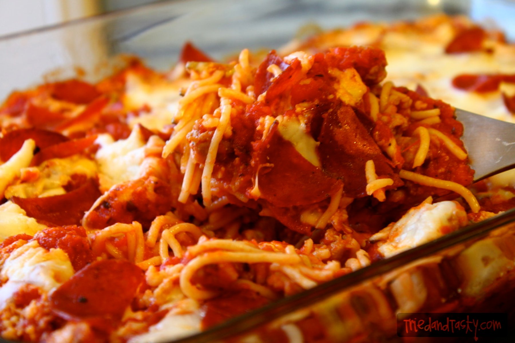 In this recipe, pizza meets spaghetti for an out of this world casserole! Pizza Spaghetti Casserole will have the whole family asking for more!