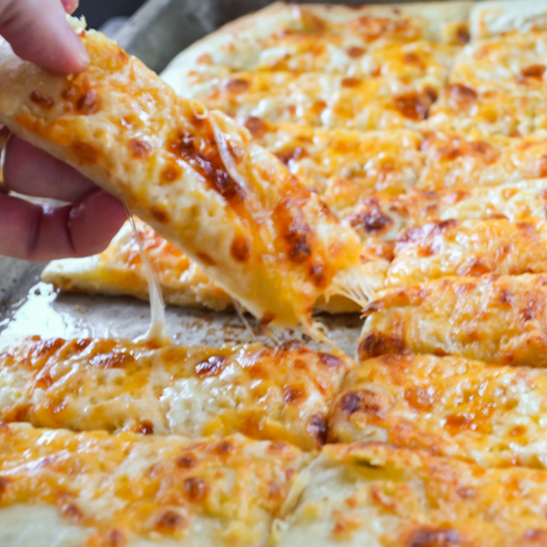 Pizzeria Style Cheesy Garlic Breadsticks. So easy and made from scratch.