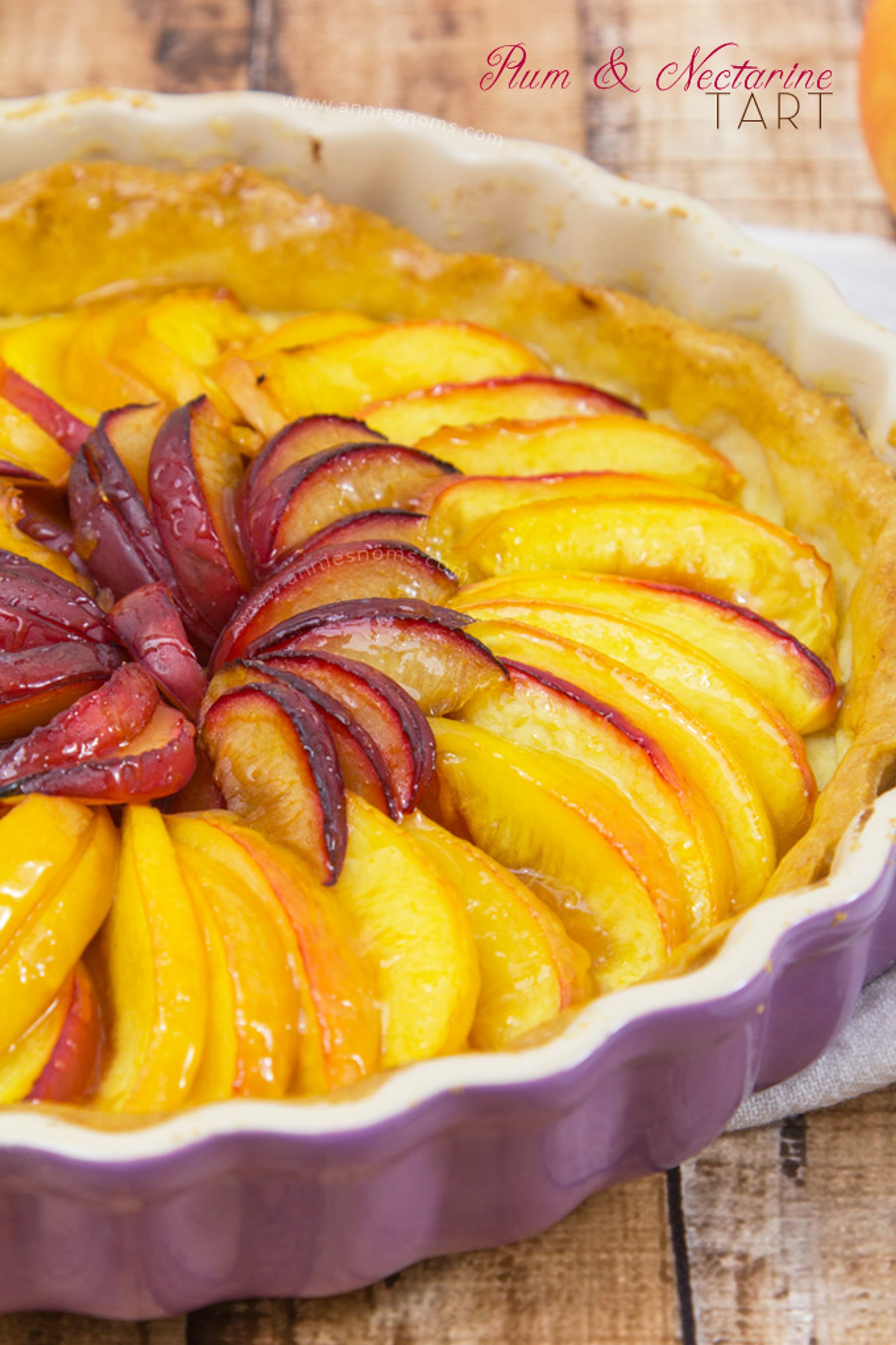 This Plum and Nectarine Tart may look fancy, but it\\\'s SO easy to make! Especially with my fool proof pie crust!