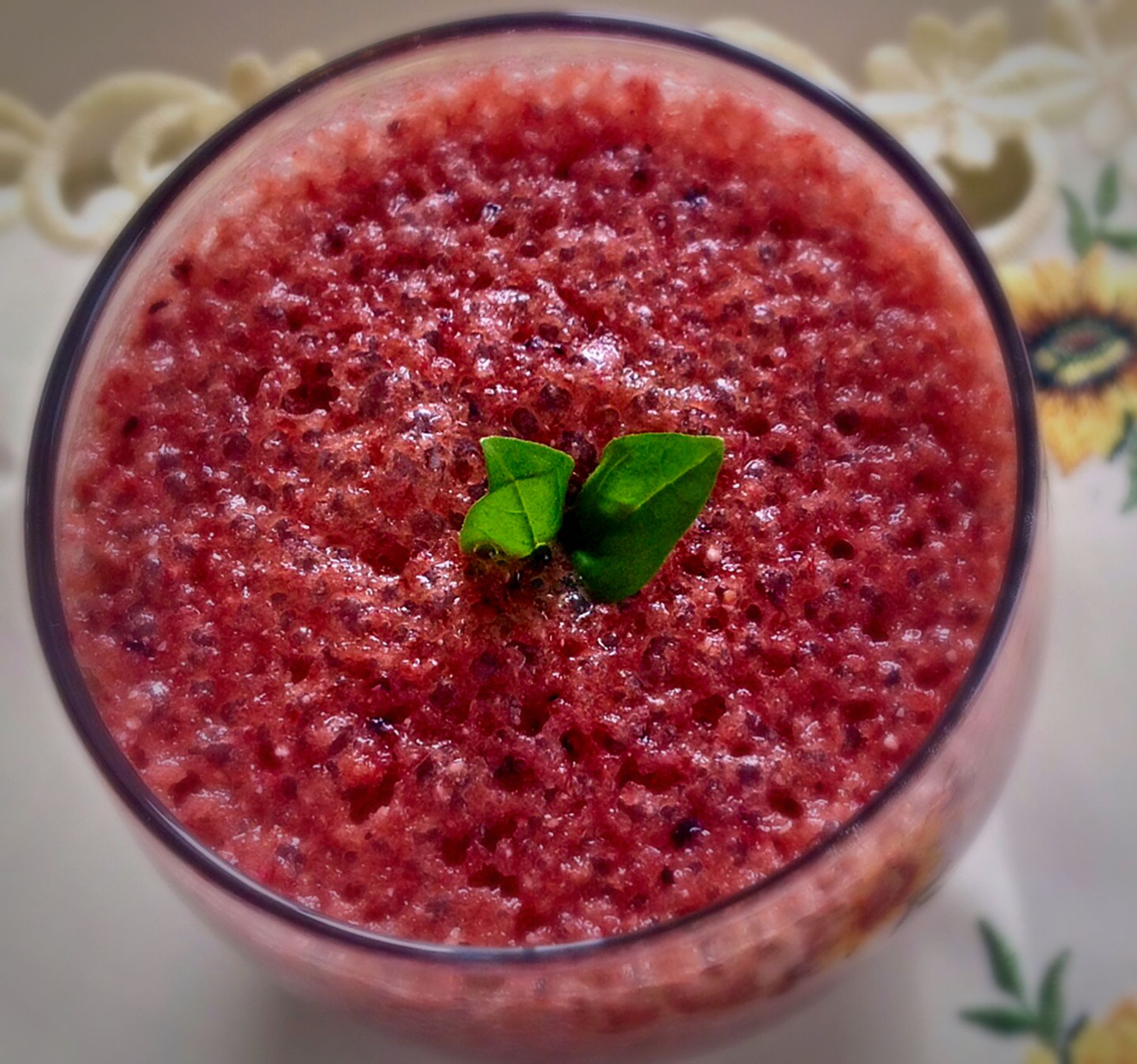 Plums belong to the family of Prunes. Plum and Pomegranate together with a hint of Basil when blended into a smoothie provides a super antioxidant beverage with innumerous health benefits. A Must Try Drink!