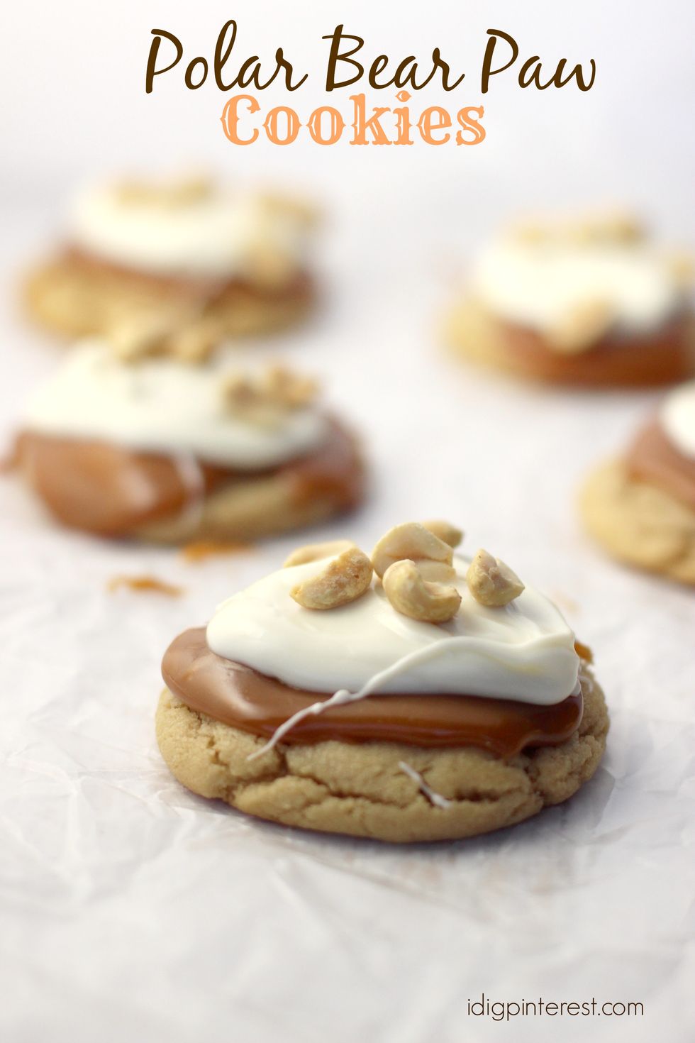 A soft Peanut Butter Cookie base with layers of caramel and white chocolate, then topped with a pinch of peanuts. Ooh la la!