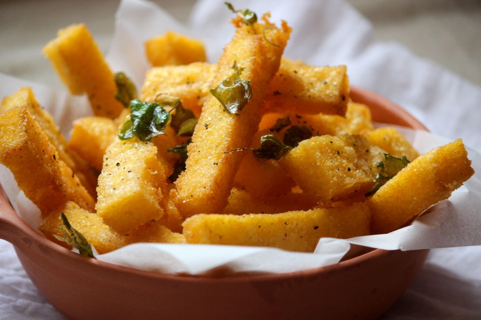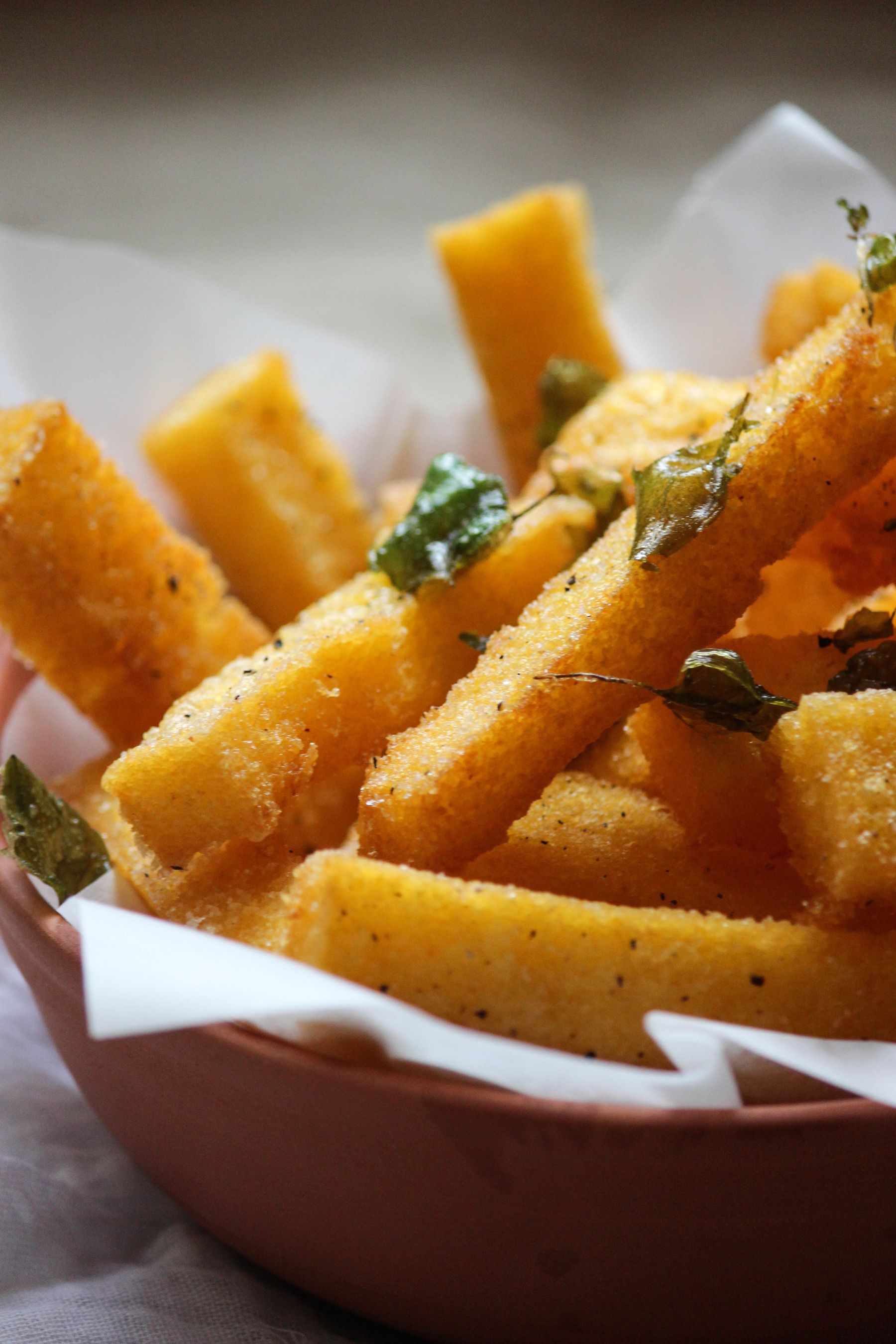 A wonderful substitute to fried, potato chips. In fact these gluten-free, polenta chips are one hundred times better! Soft on the inside, crunchy and salty on the outside. Enjoy them as a tasty appetizer or side to any meal.