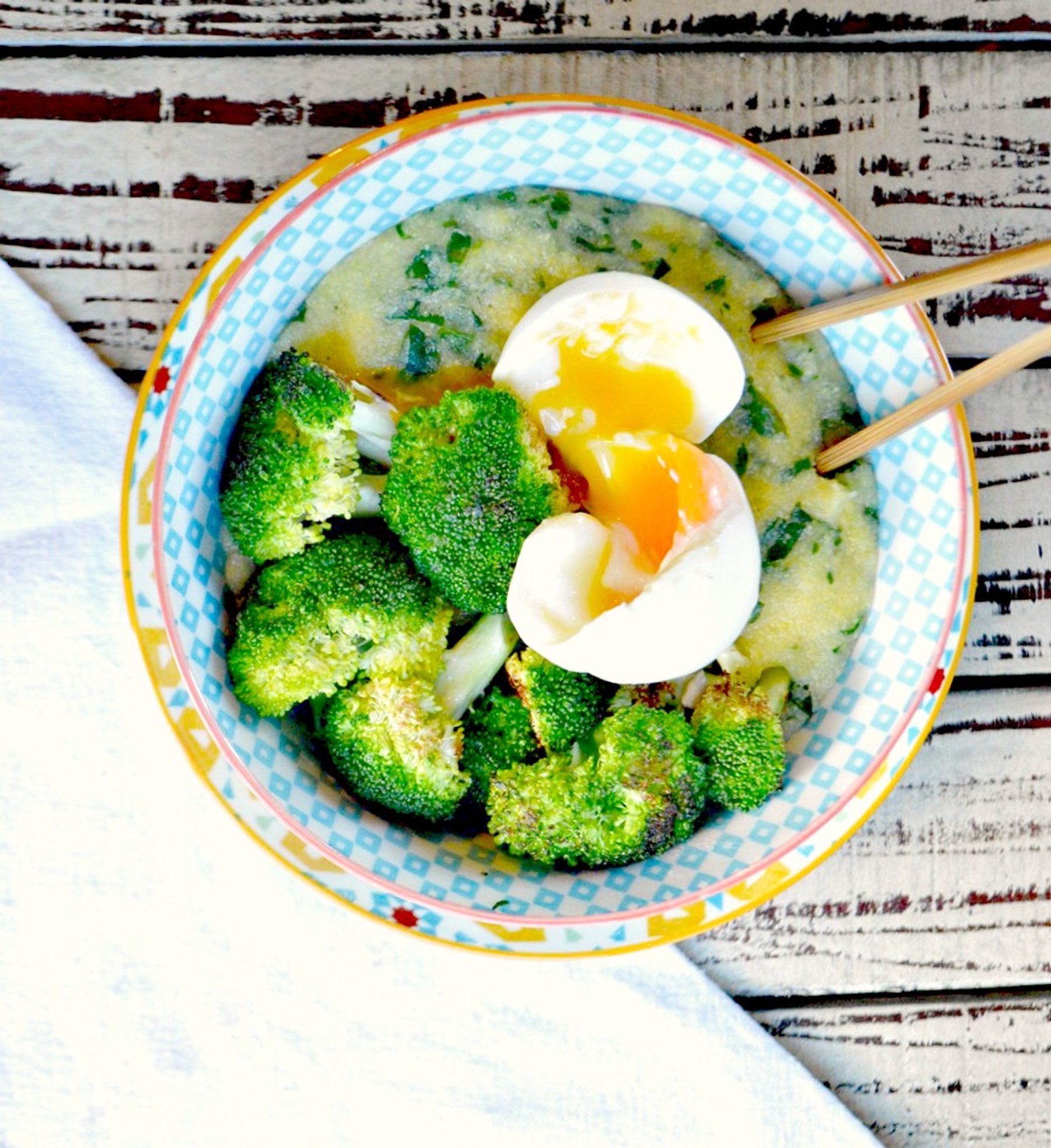 Polenta, Egg & Green Vegetable Bowl
