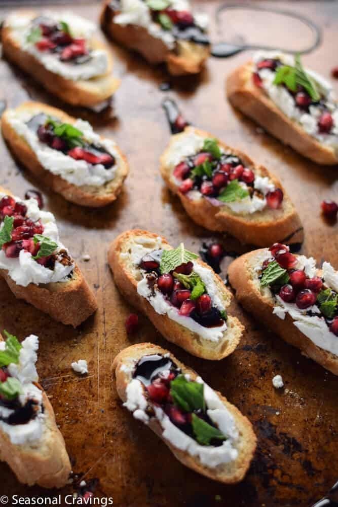 Pomegranate and Goat Cheese Crostini · Seasonal Cravings Karen KellyNovember 05, 2019 484 www.seasonalcravings.com try itSee the full directions on my site This crusty Pomegranate and Goat Cheese Crostini is a sweet appetizer for special guests over the holidays. It's the perfect combo of sweet and savory.christmas crostiniWintermintAppetizersappetizerpomegranate arilsFallChristmaspartygoat cheesebitesbalsamic syrupseasonalcravings.com