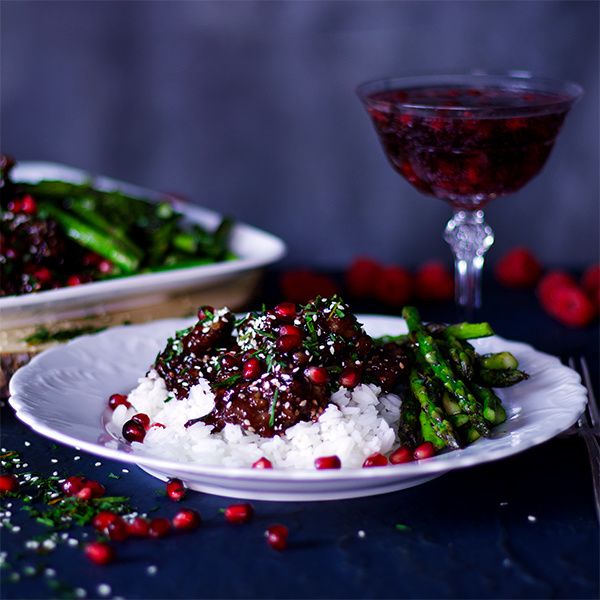 Crispy fried pieces of chicken or pork coated in a sweet, tangy, nutty pomegranate raspberry sesame sauce for a unique take on sesame chicken that just might replace your normal take-out routine. Get the recipe for Pomegranate Raspberry Sesame Chicken.