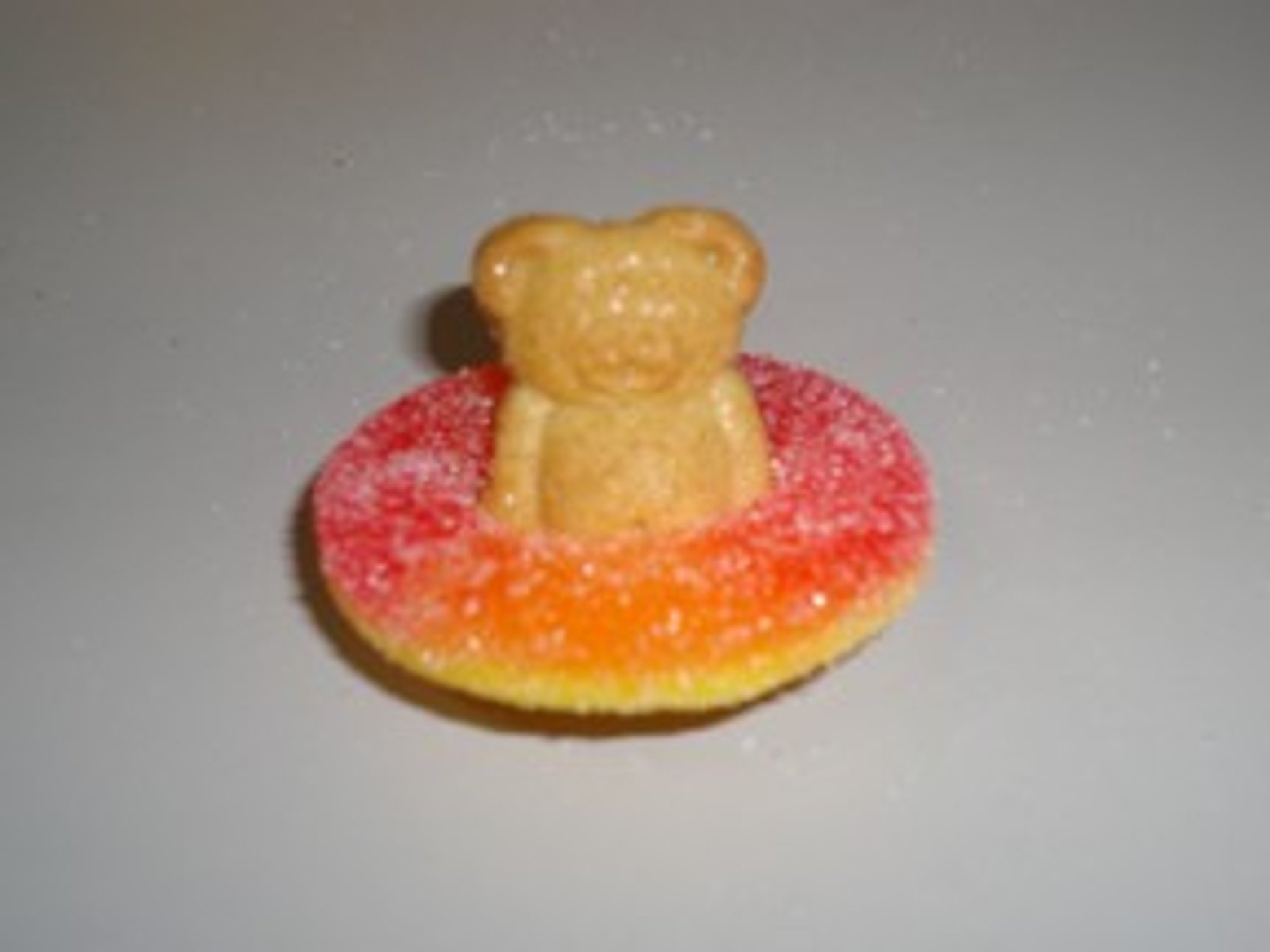 Spread or pipe icing onto cupcakes. Garnish with Teddy Grahams and Peachy Rings as desired.