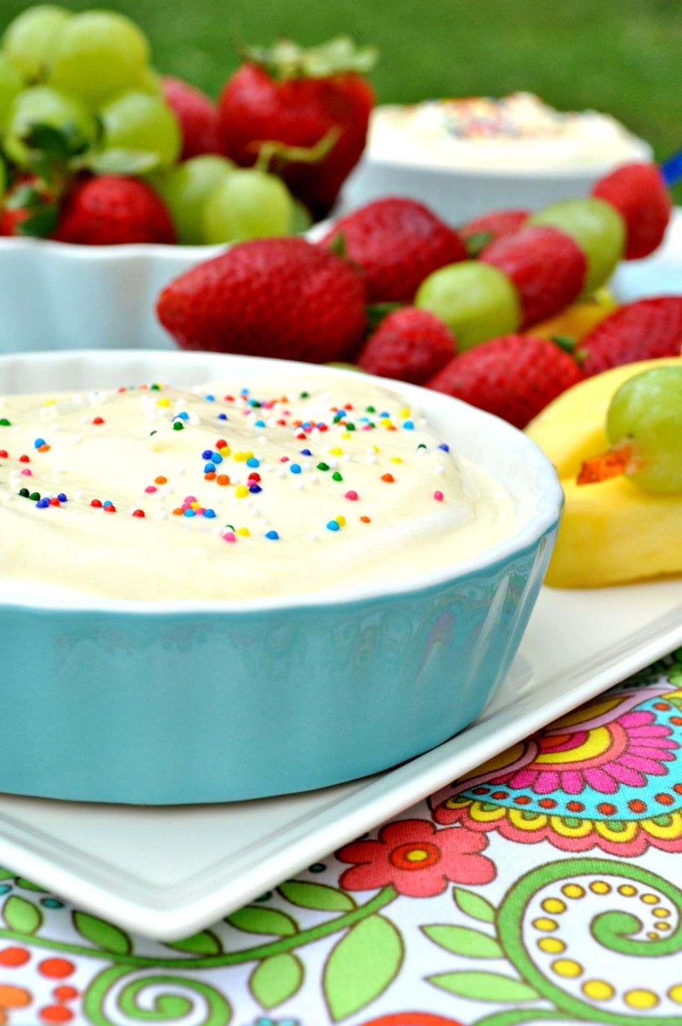 If you’re hosting a pool party or other fun gathering this summer, you MUST include one of our newest favorites: this Poolside Dip. It’s like a light, fluffy Orange Creamsicle that’s just perfect for pairing with fruit or graham crackers.