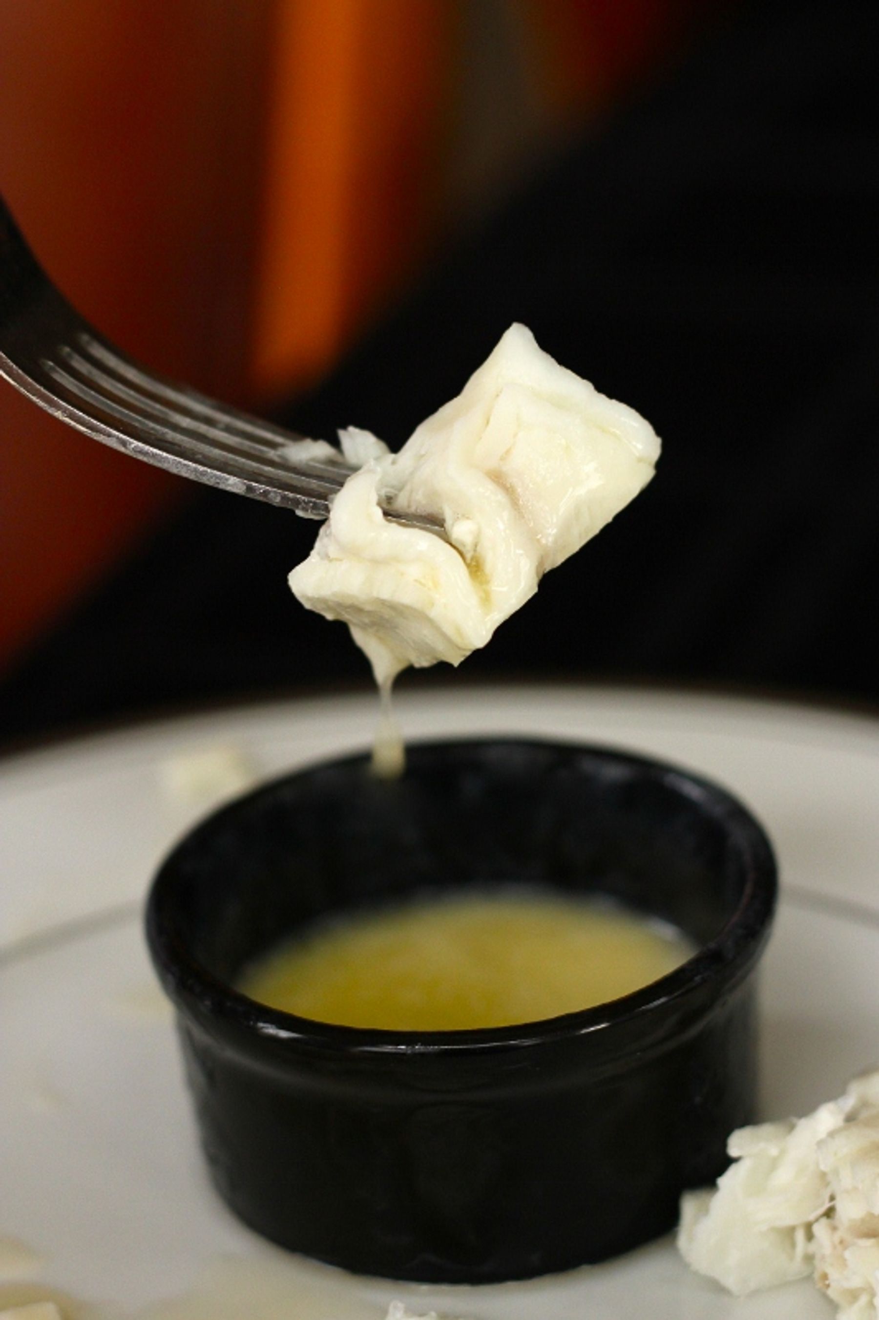 ?In a medium-large pot bring about 2 qt. of water, sugar, and salt to a boil. Cut halibut into 2-3 large pieces (so it cooks faster) and add to water. Boil for about 10 minutes or until halibut is nice and...