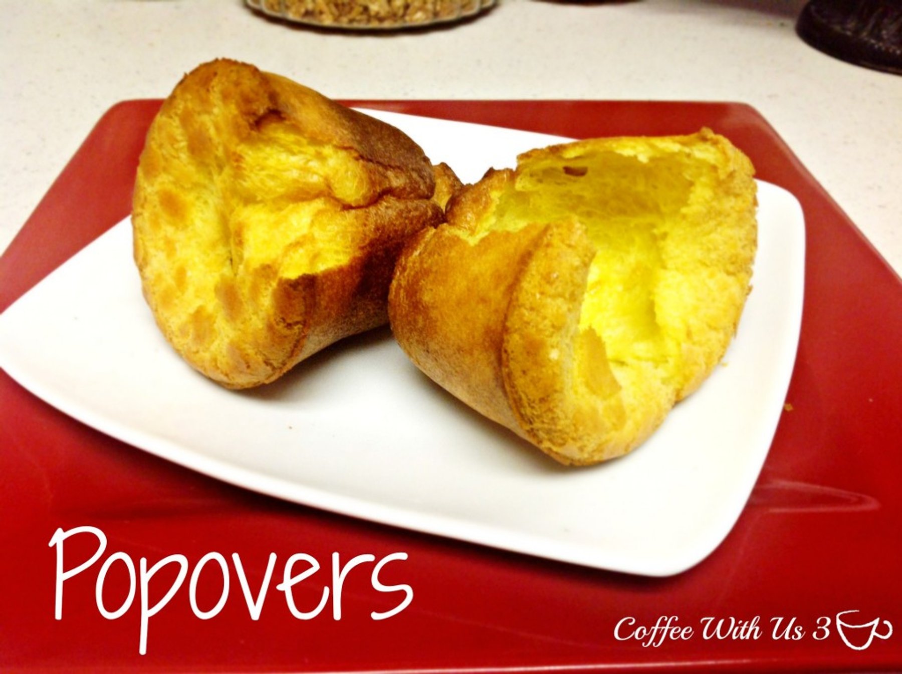 Preheat oven to 400. Grease popover pan (6 cups) with 1 tsp butter. In a food processor, combine remaining ingredients. Mix until smooth. Pour batter in pan dividing evenly among the 6 cups. Bake for 40...