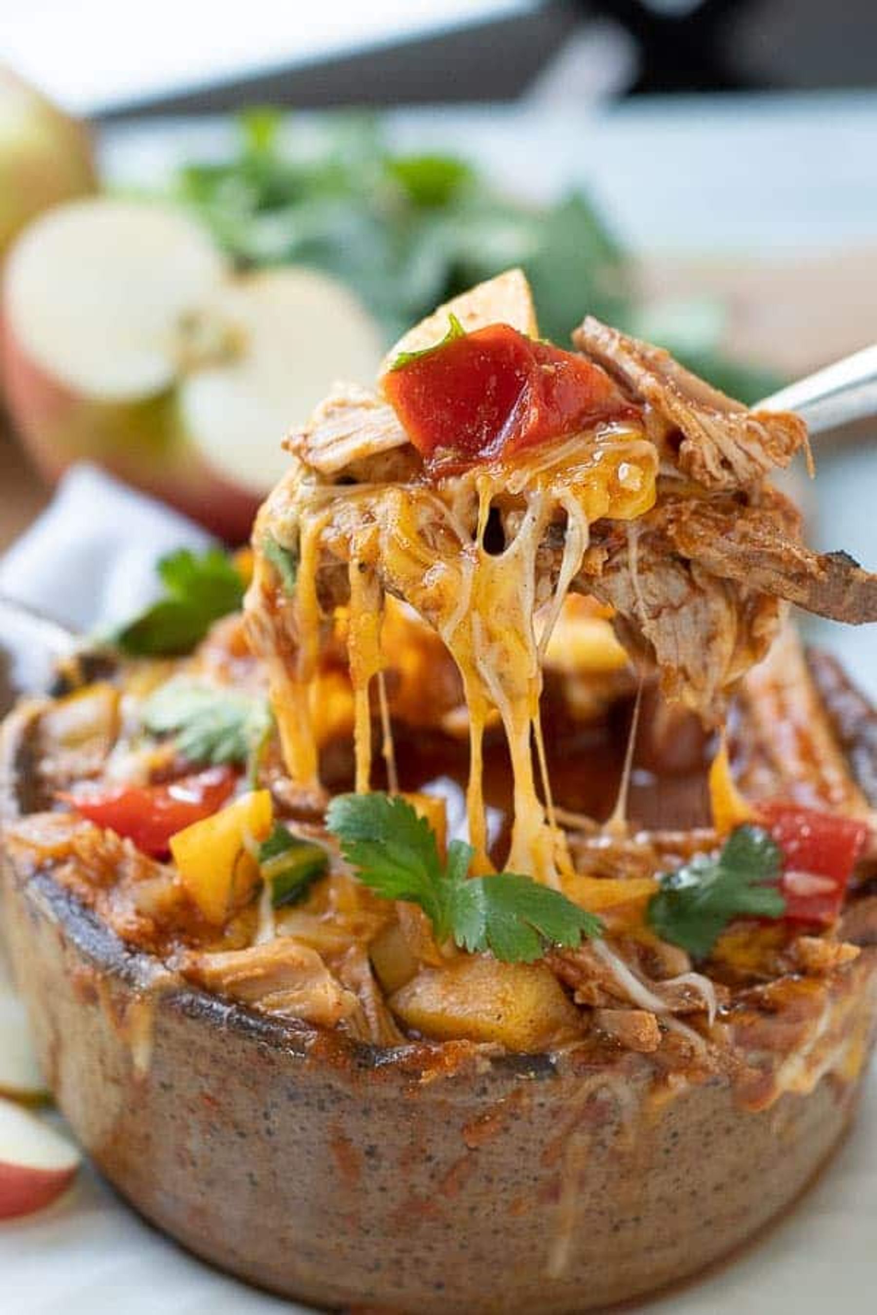 Pork Chili lets your slow cooker do all the work making this easy, award-winning chili with pulled pork chili flavored with apples, pumpkin, and chipotles.