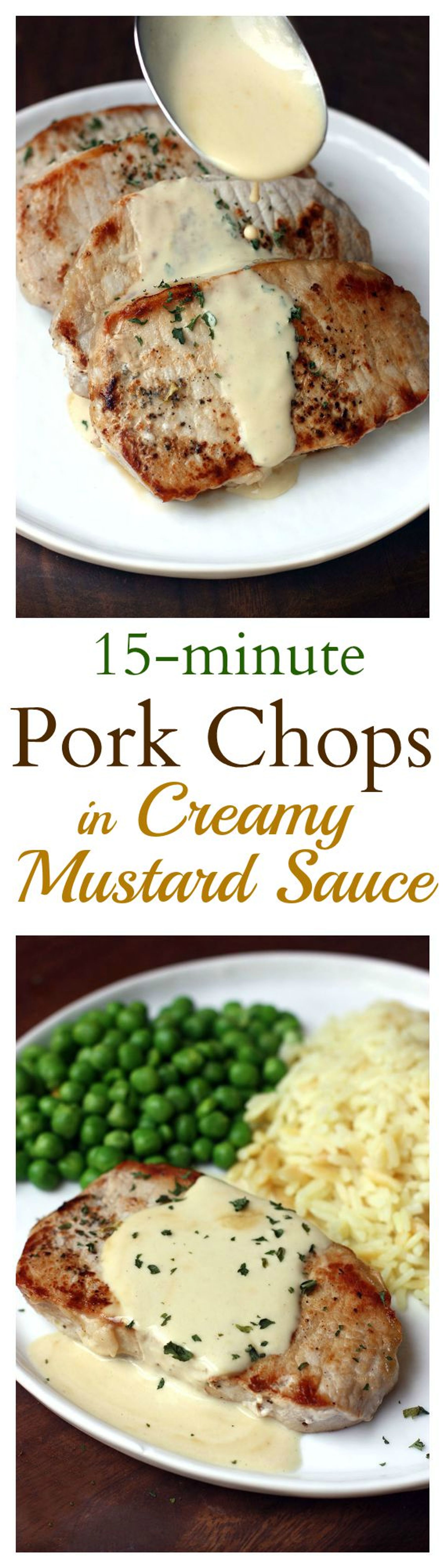 Pan-seared pork chops with a smooth, creamy mustard sauce. An easy dinner that takes just 15-minutes to make!