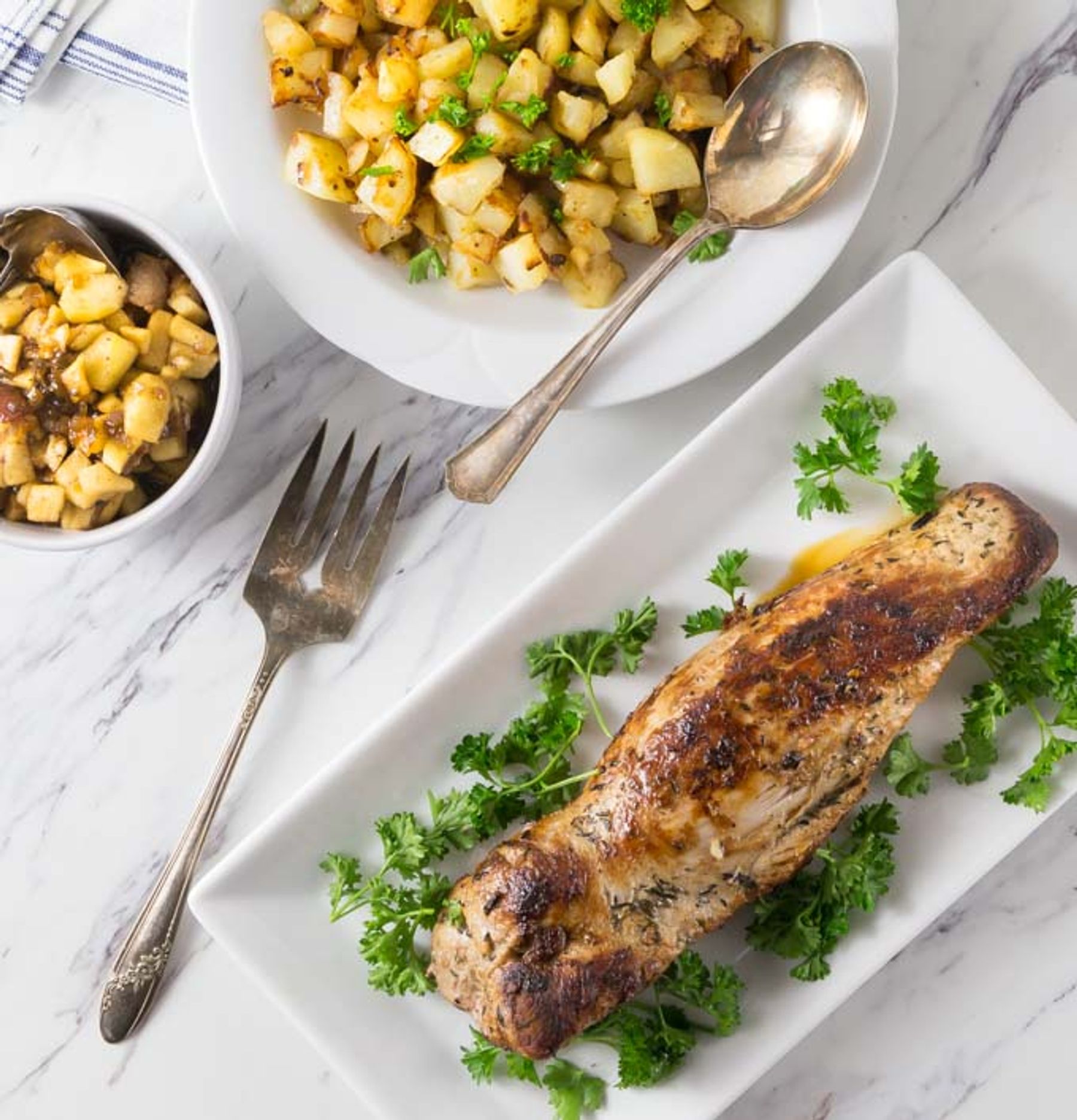 Pork loin with spicy maple chutney is perfect for a dinner party, a special holiday, or just because. The sweet and spicy contrast is perfect!
